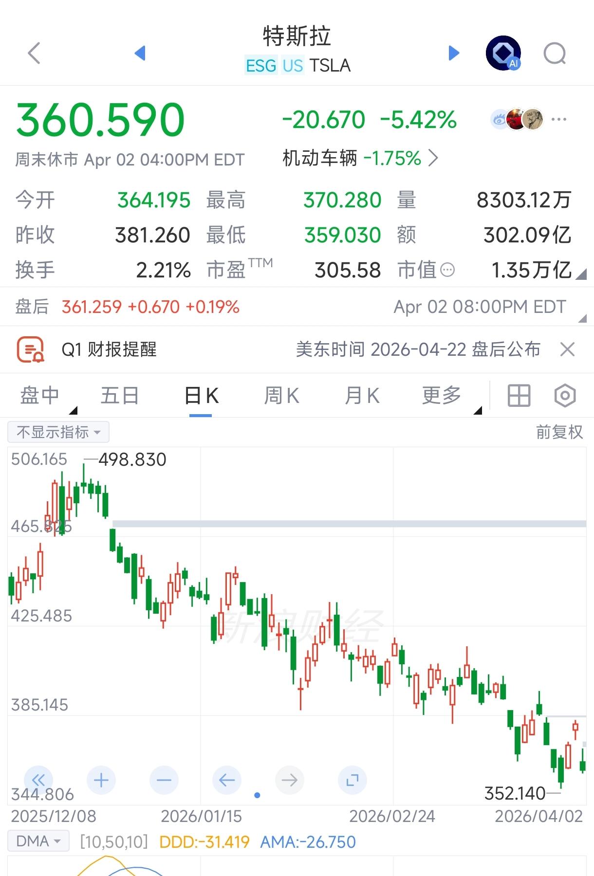 特斯拉一季度交付35.8万辆低于主流预期,股价自2026年1月份以来连续4个月下跌,累计跌幅23.67%。