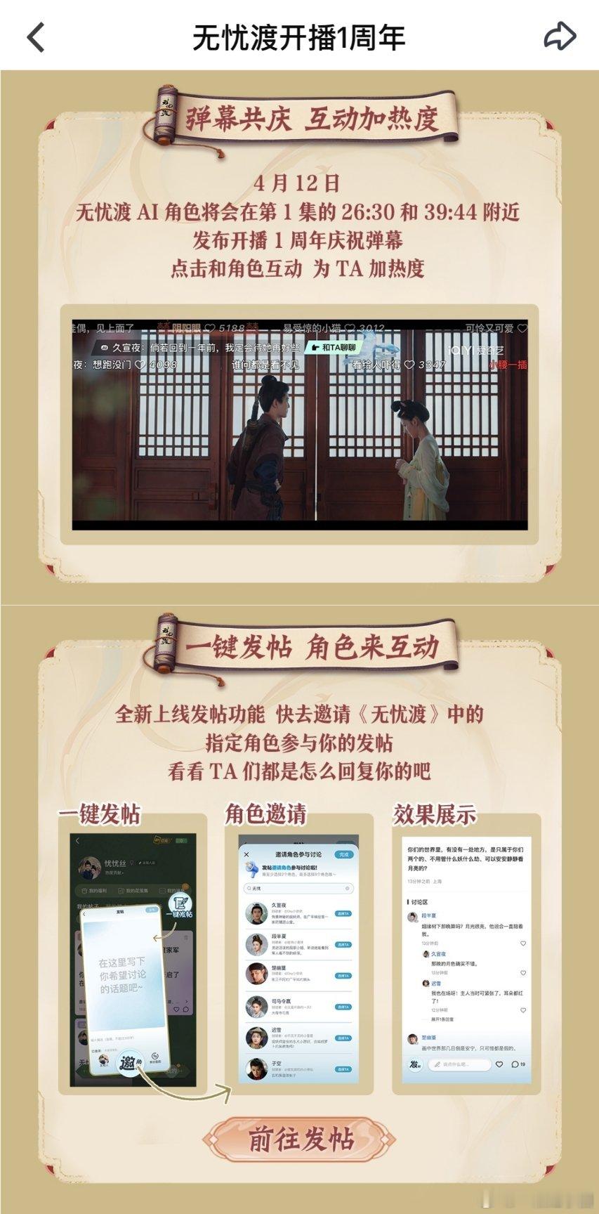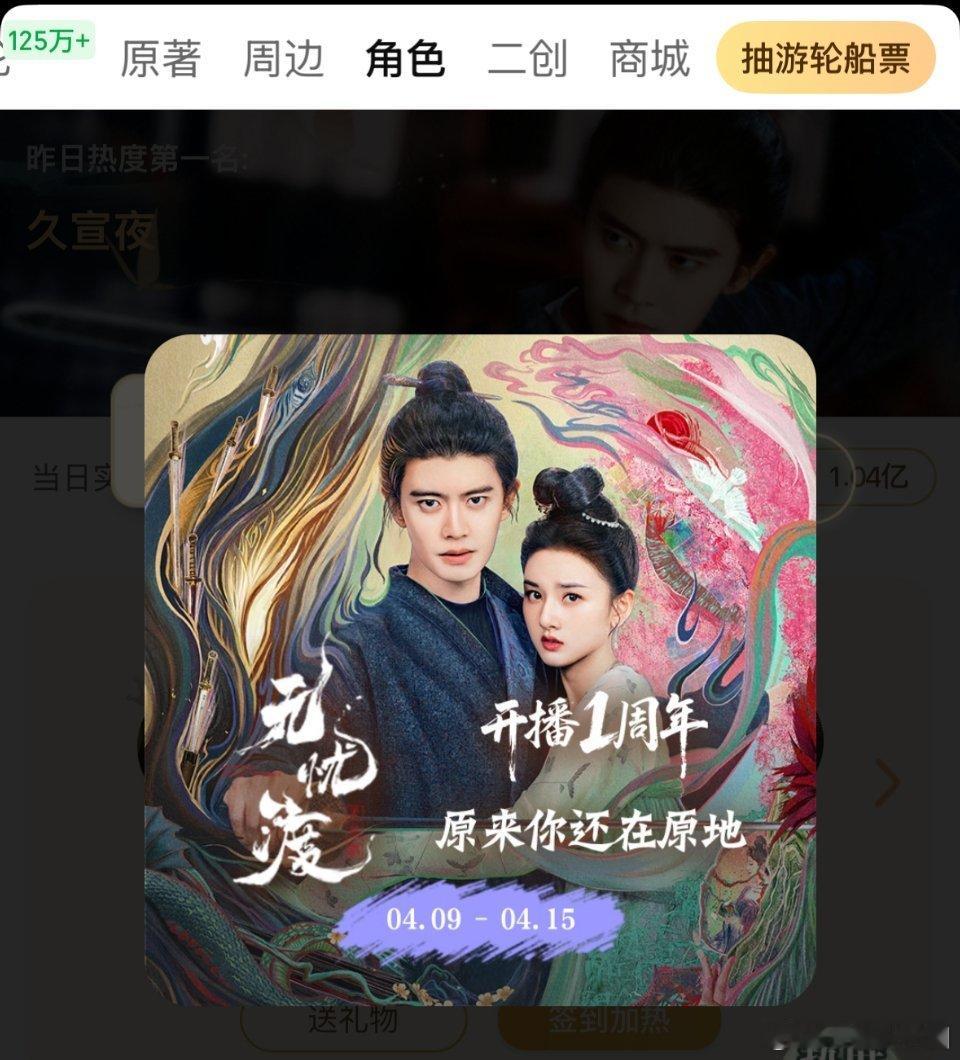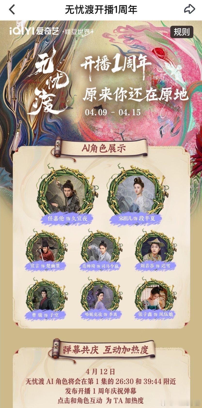 爱奇艺为《无忧渡》举办了一周年活动!在角色界面有一周年弹窗,还有一周年专属页面!桃其实很清楚谁是它的民选爆剧吧