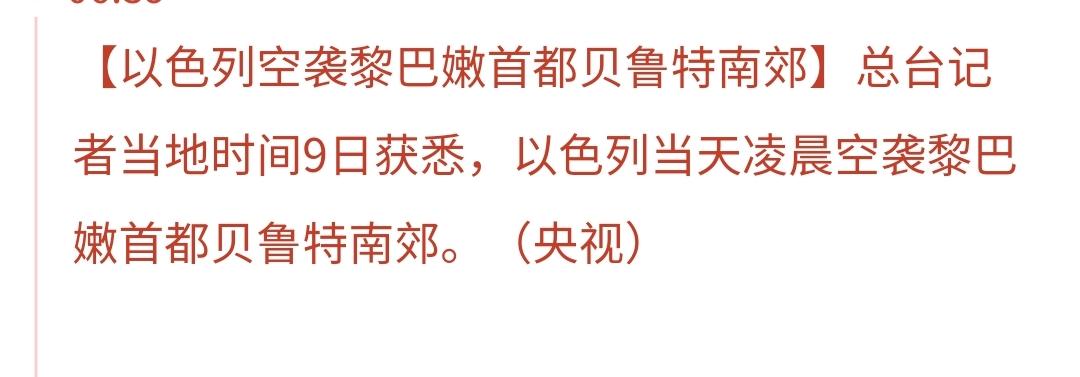 总台记者当地时间9日获悉,以色列当天凌晨空袭黎巴嫩首都贝鲁特南郊。(来源:央视)