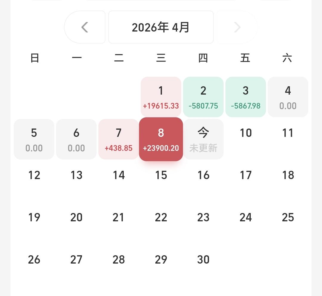 本月有了五个交易日,两亏三赢,两个交易日亏损,三个交易日盈利,月收益32278元。