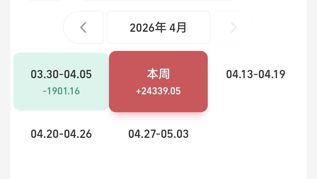 本周有了两个交易日,全部都是正收益,周收益24339元。