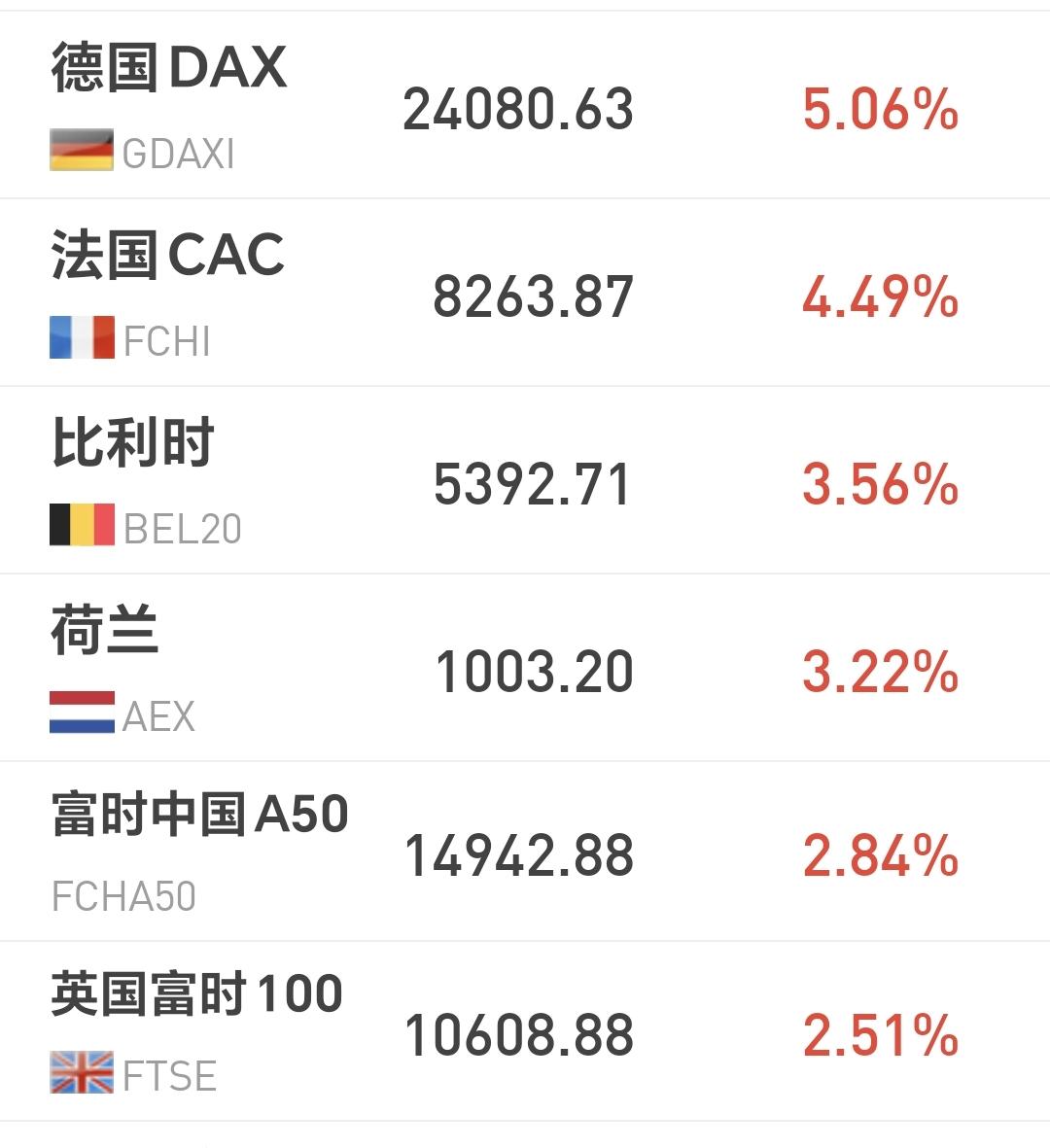 这个市场昨天晚上上涨,德国上涨了5.06%,法国上涨了4.49%,英国上涨了2.51%,上涨幅度都比较大。