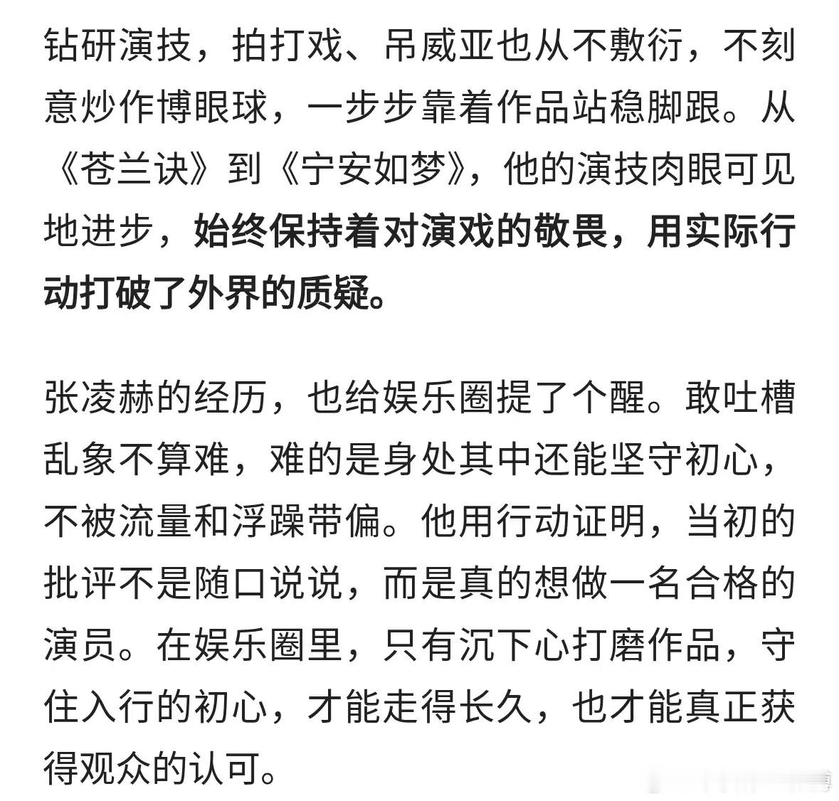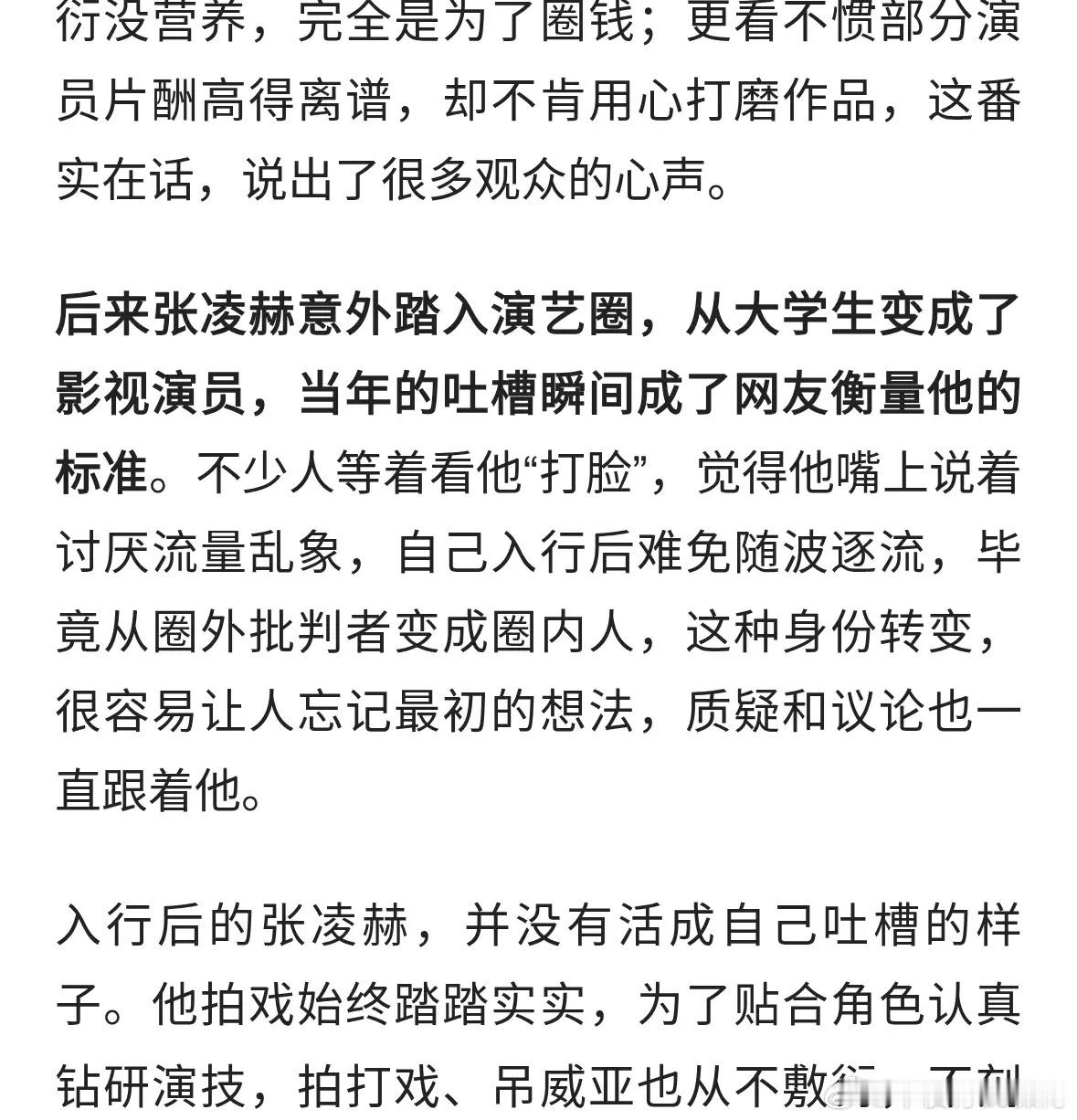 张凌赫早年发文痛批圈内乱象,如今入行后,用实力兑现当年的话。