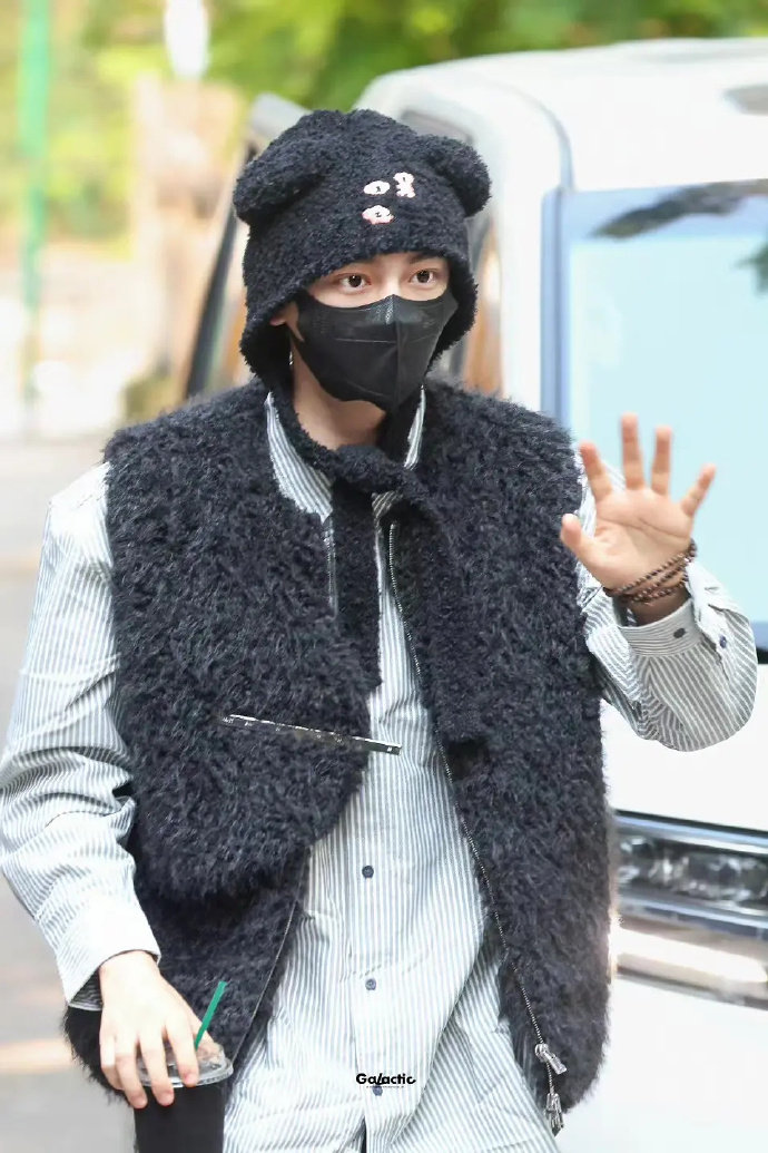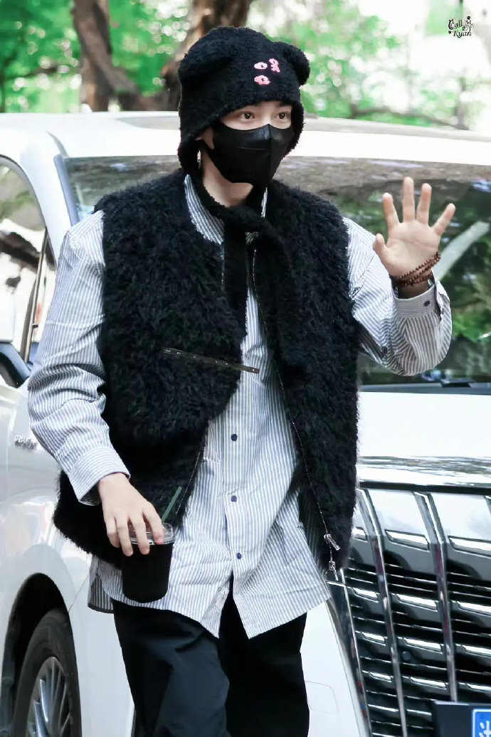 丁禹兮今日路透,这个小熊耳朵帽子可爱