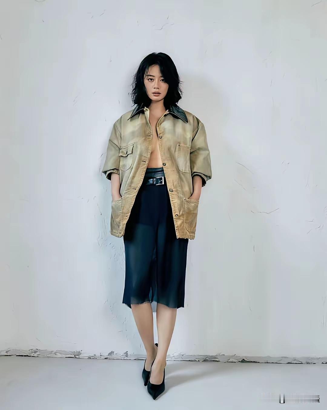 尤其是配上这样中性的粗布衫,既不精致,也不好看,还妄图玩性感,就显得极为违和、尴尬透顶,实际上既不性感也不好看。