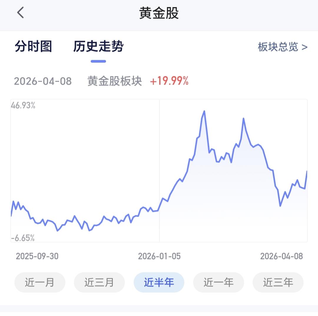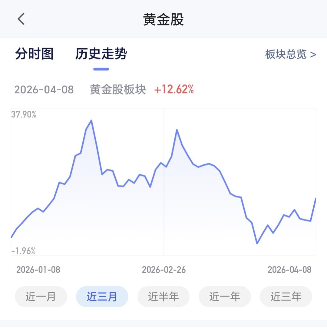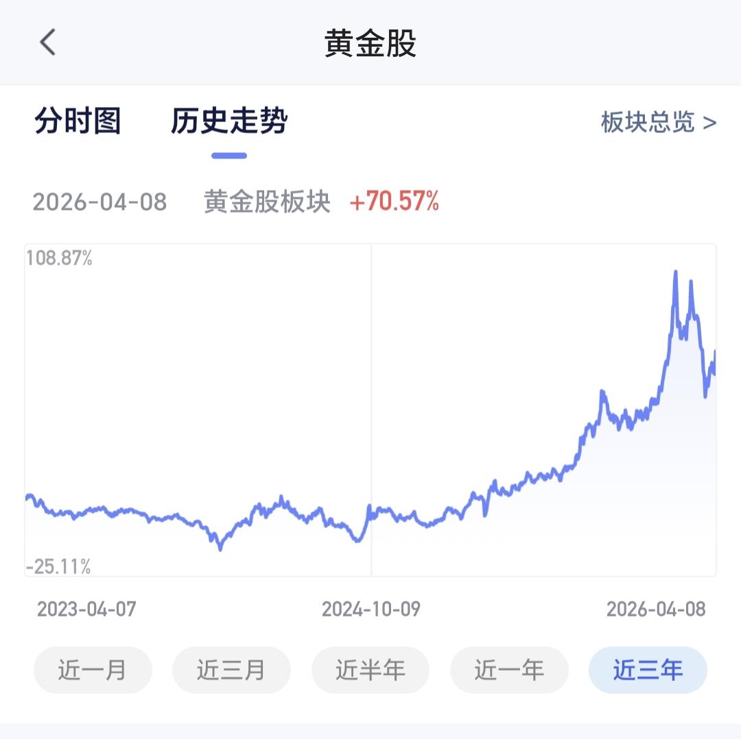 黄金股板块前几周下跌跌破了周线级别上涨通道的下轨线,昨天上涨回到了这个上涨通道内,今天在这个上涨通道下轨线附近震荡,如果能够重新回到这个上涨通道内,长线持有的人可以继续持有。