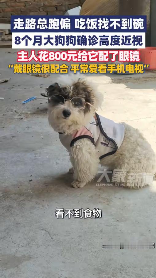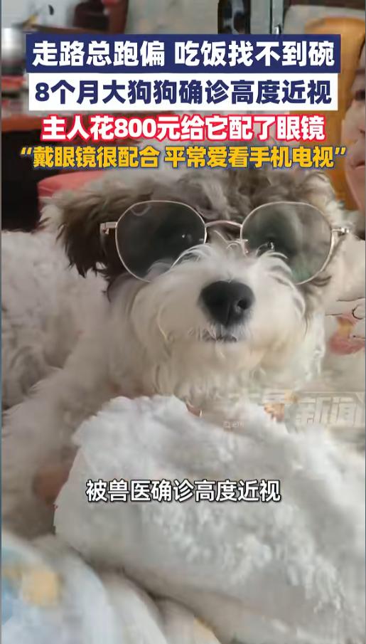 信息来源:《4月8日(报道),河南一只8个月大的狗狗被兽医诊断为高度近视,主人花800元为它配眼镜:平时爱看手机和电视》大象新闻