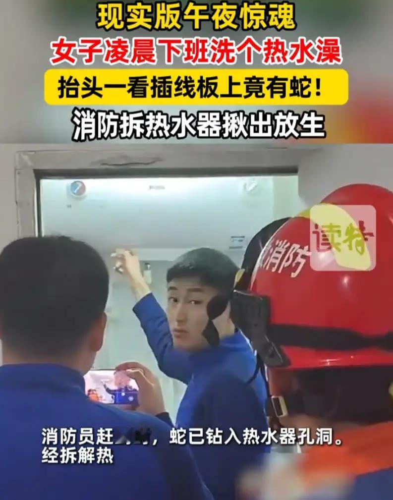 胡女士吓得不敢动弹,屏住呼吸慢慢退出浴室,颤抖着手拨打119求助。消防员很快赶到,可这条小蛇十分机灵,听到动静后迅速扭动身体,钻进了热水器后方的孔洞里。