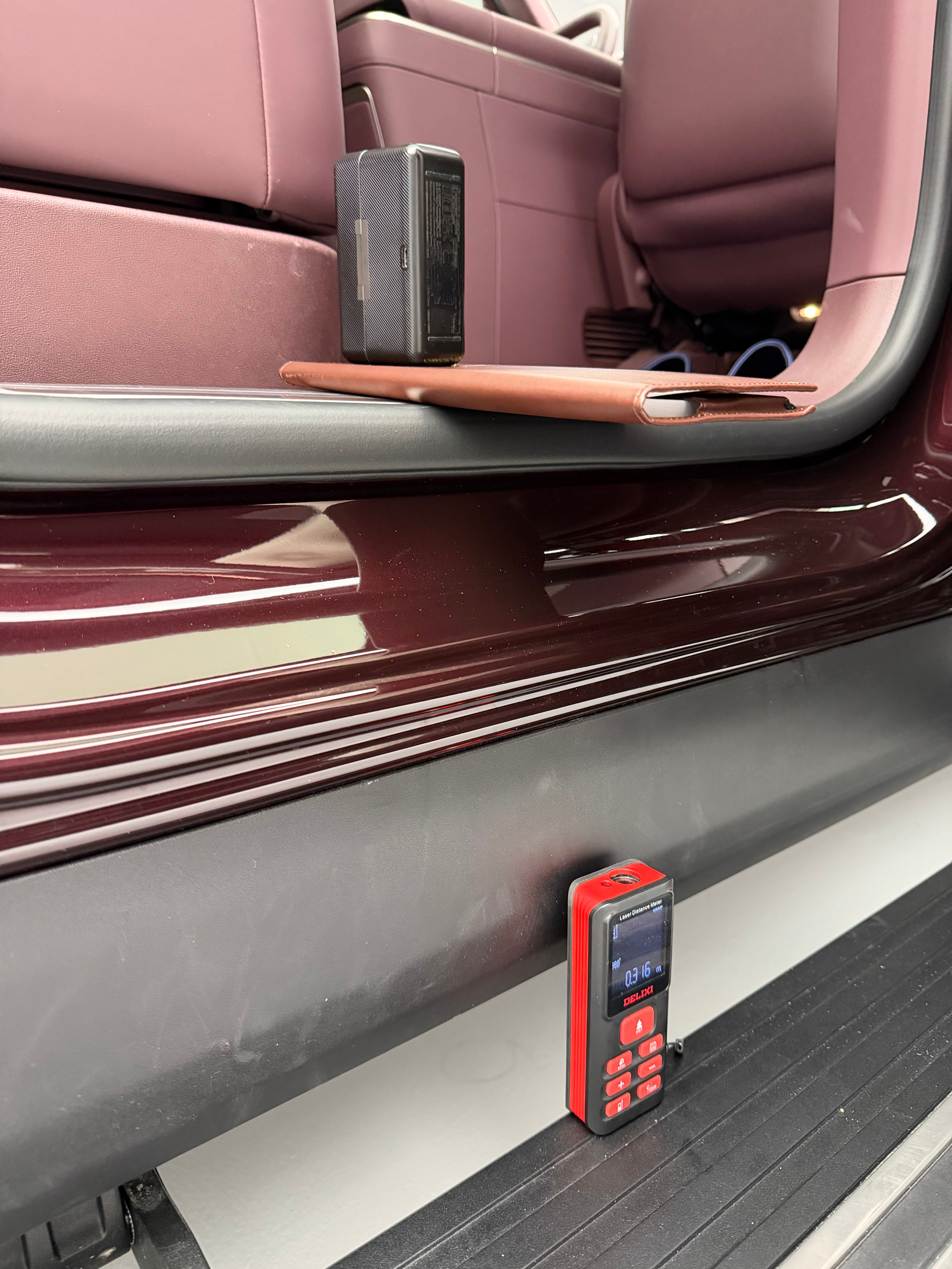 这就是蔚来ES9电动侧踏板展开后,踏板上表面到车门门槛的垂直高度,实测值:0.316m = 31.6cm。