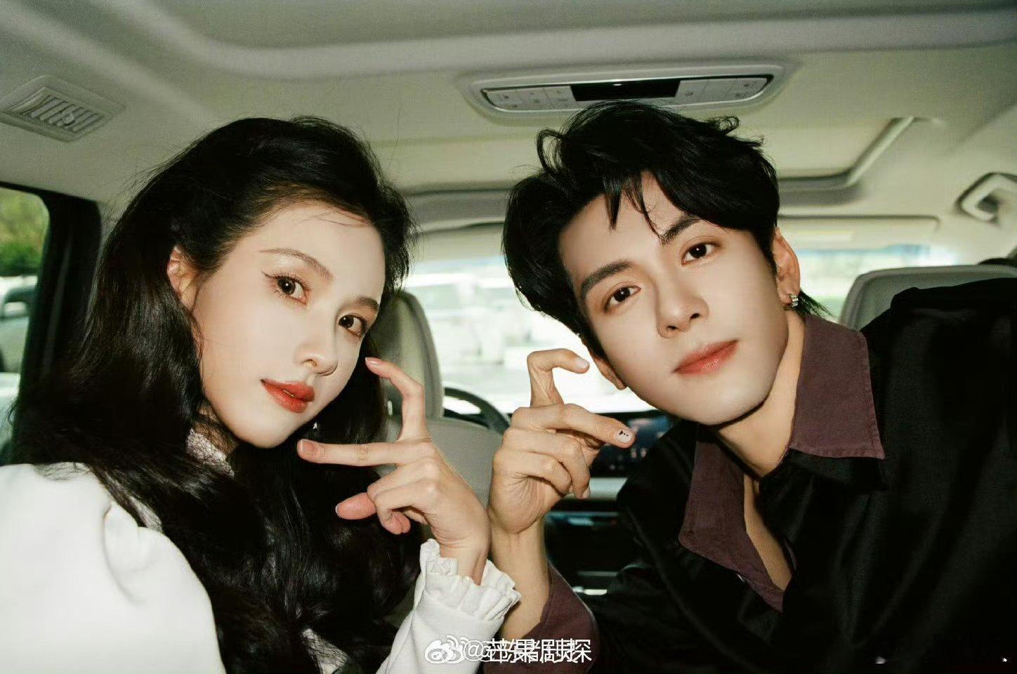 陈都灵曾舜晞脸颊比心陈都灵曾舜晞车内比心自拍 反手比心,好权威的两张脸