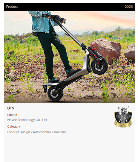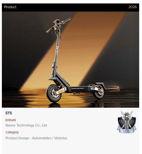 FDA由国际奖项协会主办,与红点、iF齐名,铂金奖仅授予兼具极致创新与前瞻价值的标杆作品。四款车型覆盖都市代步、全地形越野、精英通勤等场景:ST5主打轻量化与潮流美学;XT5以机甲设计语言重塑越野滑板车;UT5融合超跑涂装与运动性能;NT5搭载低位照明与可扩展结构。此次获奖印证了NAVEE“设计驱动、用户至上”的体系化能力。
