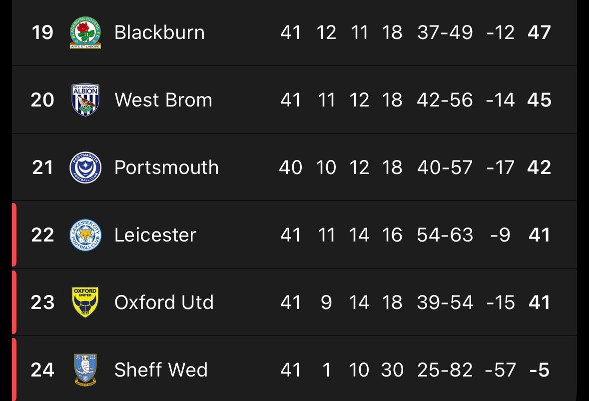 扣分后的莱斯特城以41分位列英冠第22位,深陷降级区,赛季仅剩5轮联赛,莱斯特城必须拿出全力、力争就在英冠。
