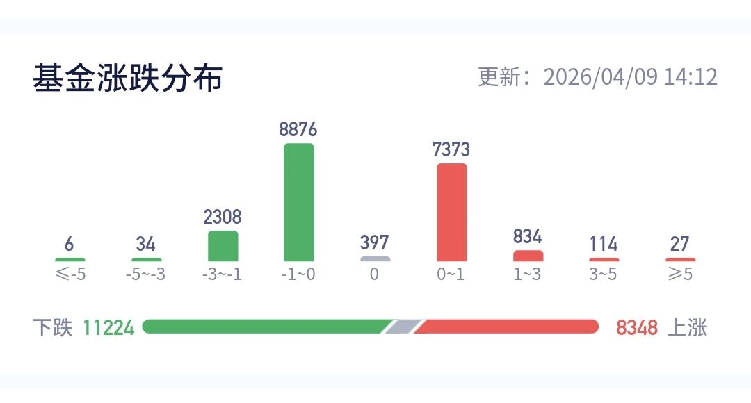 整个基金市场,上涨8348家,下跌11224家,上涨幅度超过5%的27家,下跌幅度超过5%的6家。