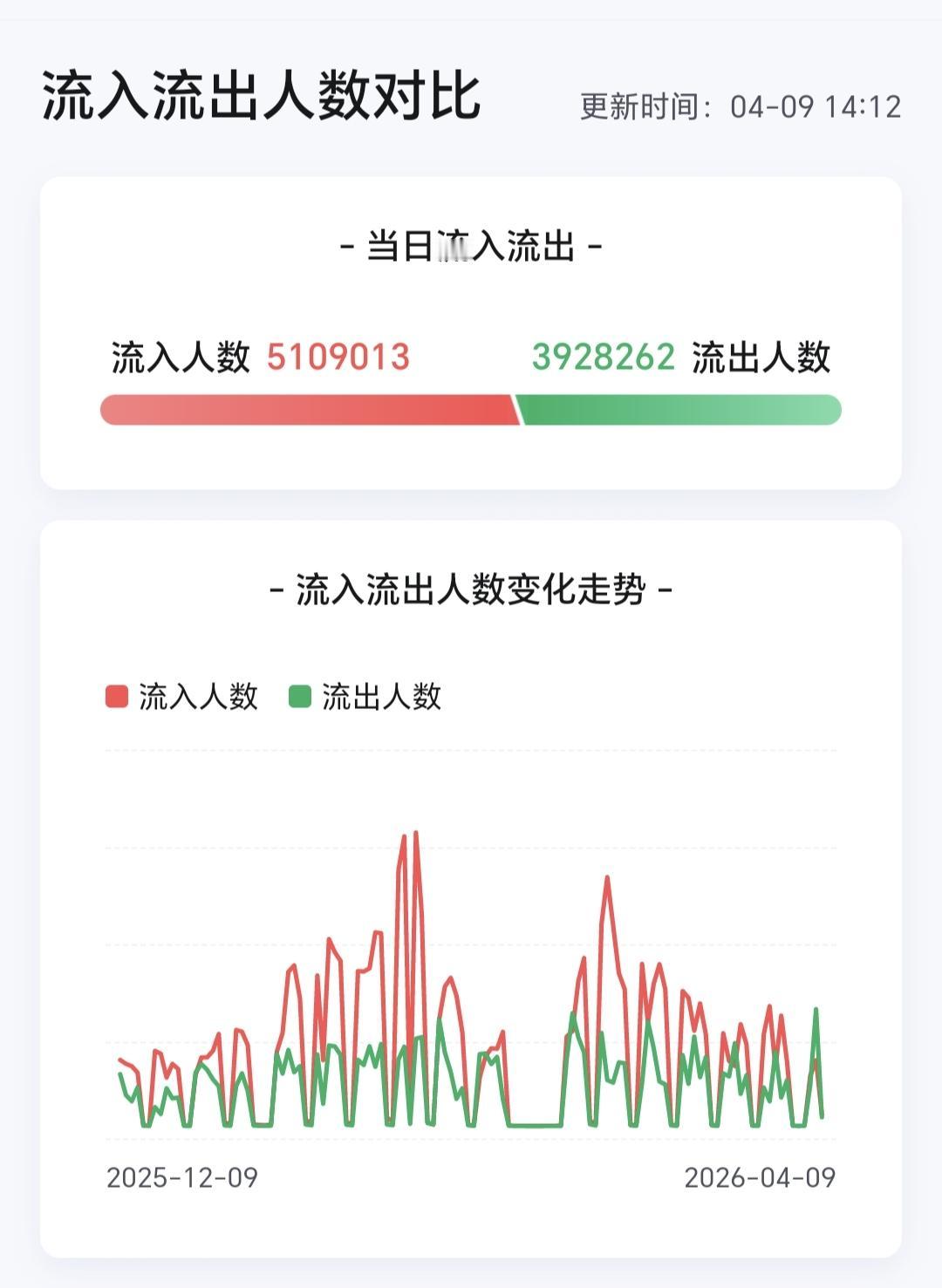 看下面的截图5,这是今天加仓人数和减仓人数,今天加仓人数为5109013人,今天减仓人数为3928262人,加仓人数超过了减仓人数。