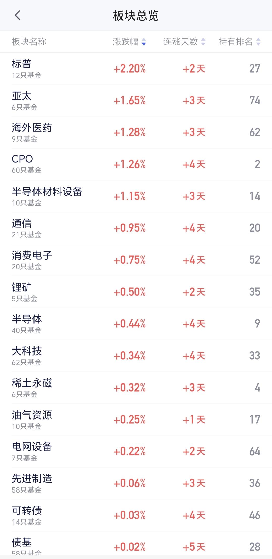 整个市场上涨幅度最大的三个板块是:海外医药板块,CPO板块,半导体材料设备板块,下跌幅度最大的三个板块是:金融科技板块,传媒游戏板块,AI应用板块。