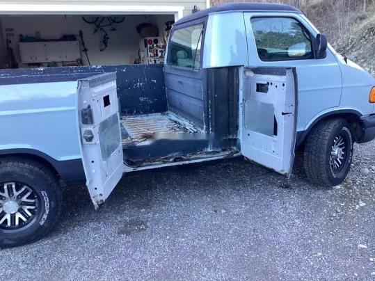 大面包子改成的皮卡~~~这玩意是2001年出厂的,然后被改装成这样了~~~此车装备了可以输出230马力的V8引擎,此车行驶了九万多英里,车况一般,此车要价6500美元~~~值得注意的是:这车改成这样,居然还能上牌子合法上路行驶!!! 海阔试车超话 海外二手车