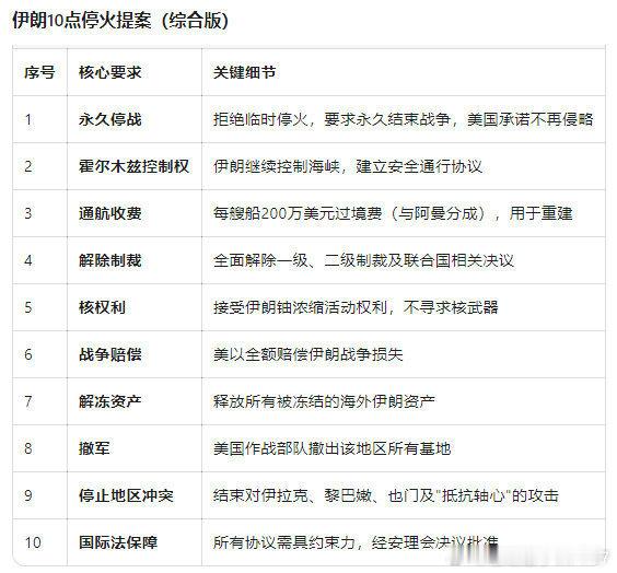 伊朗战事最新进展【伊朗公布10项停战条款主要内容】