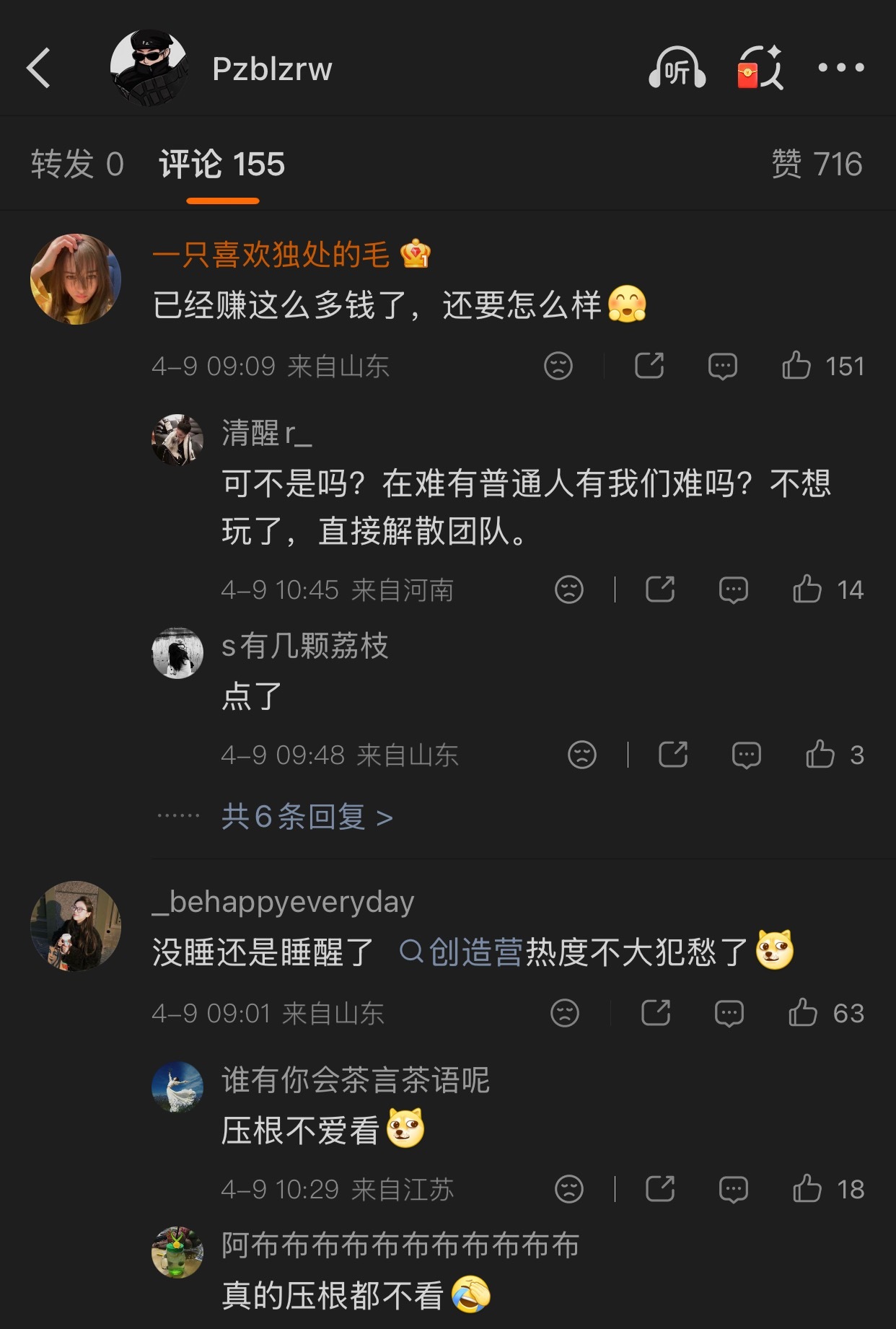 牌牌琦感慨互联网好难!粉丝却不买账:禁止有钱人卖惨!你已经这么多钱了,还要怎样?创造营热度不大犯愁了。该捧的不捧,不该捧的瞎捧!
