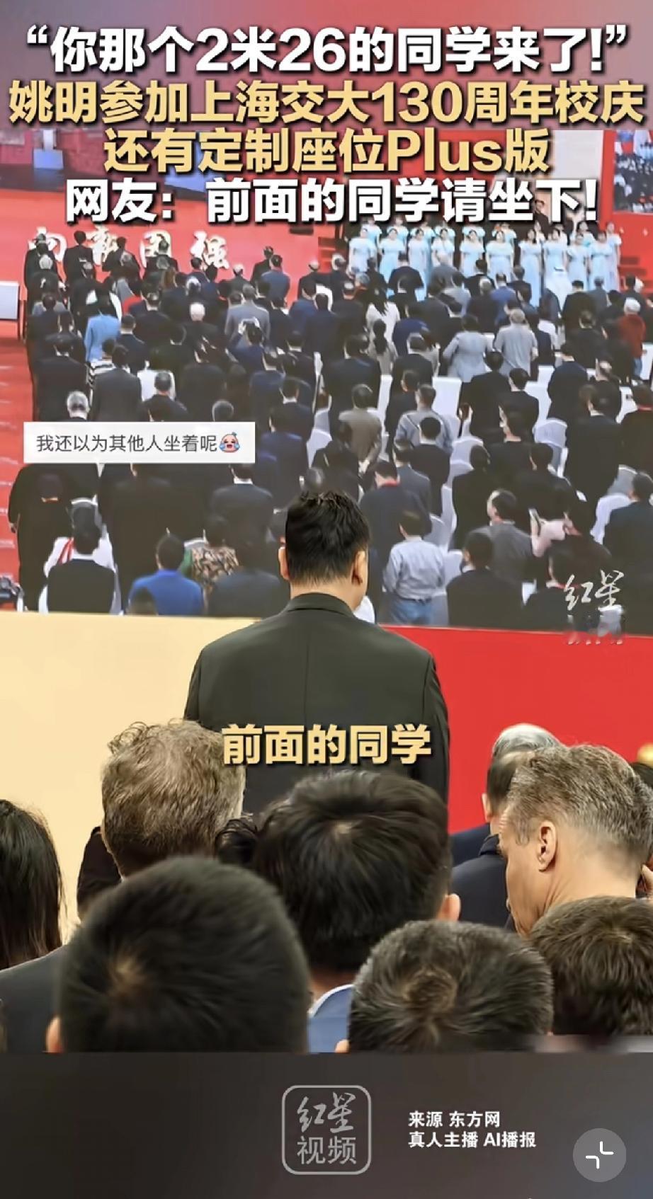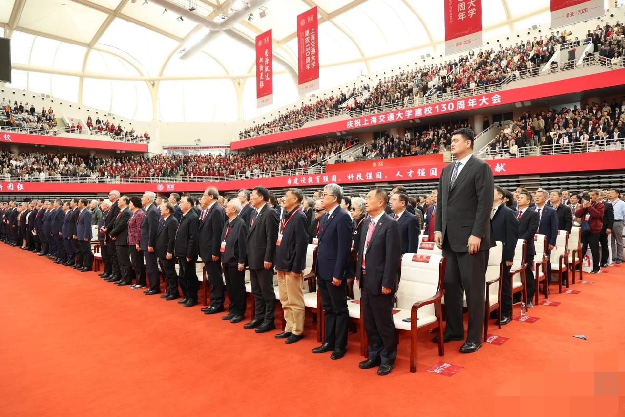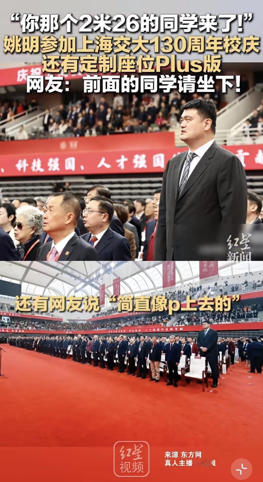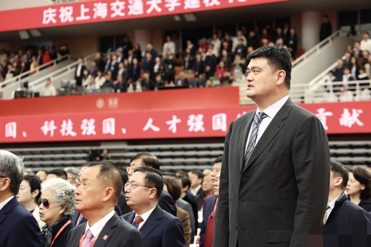 4月8日,姚明参加上海交通大学130周年校庆,他站在最边上格外亮眼,原因是他的身高与周围人格格不入,简直太高了,明显比别人高出一大截。