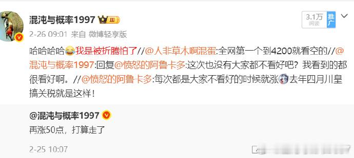 今年逃顶也是2月9日就提前预告,如果上证新高,就清仓一次。2月25日说如果再涨50点就跑(因为再涨50点就新高了),被称为4200看空全网第一人。3月3日4197新高,就真的大跌下来了。所以逃顶也是提前很长时间就跟大家预告的。