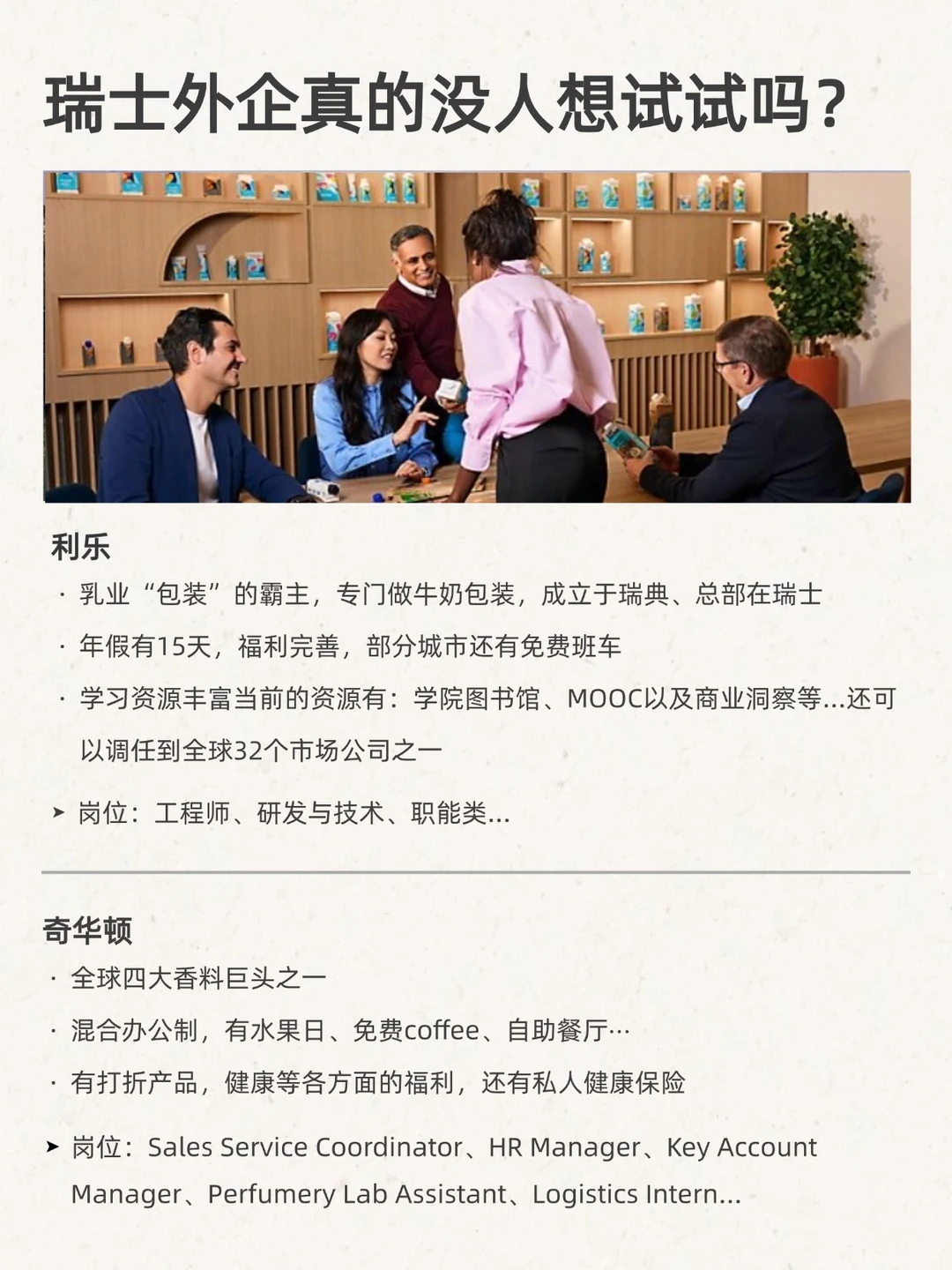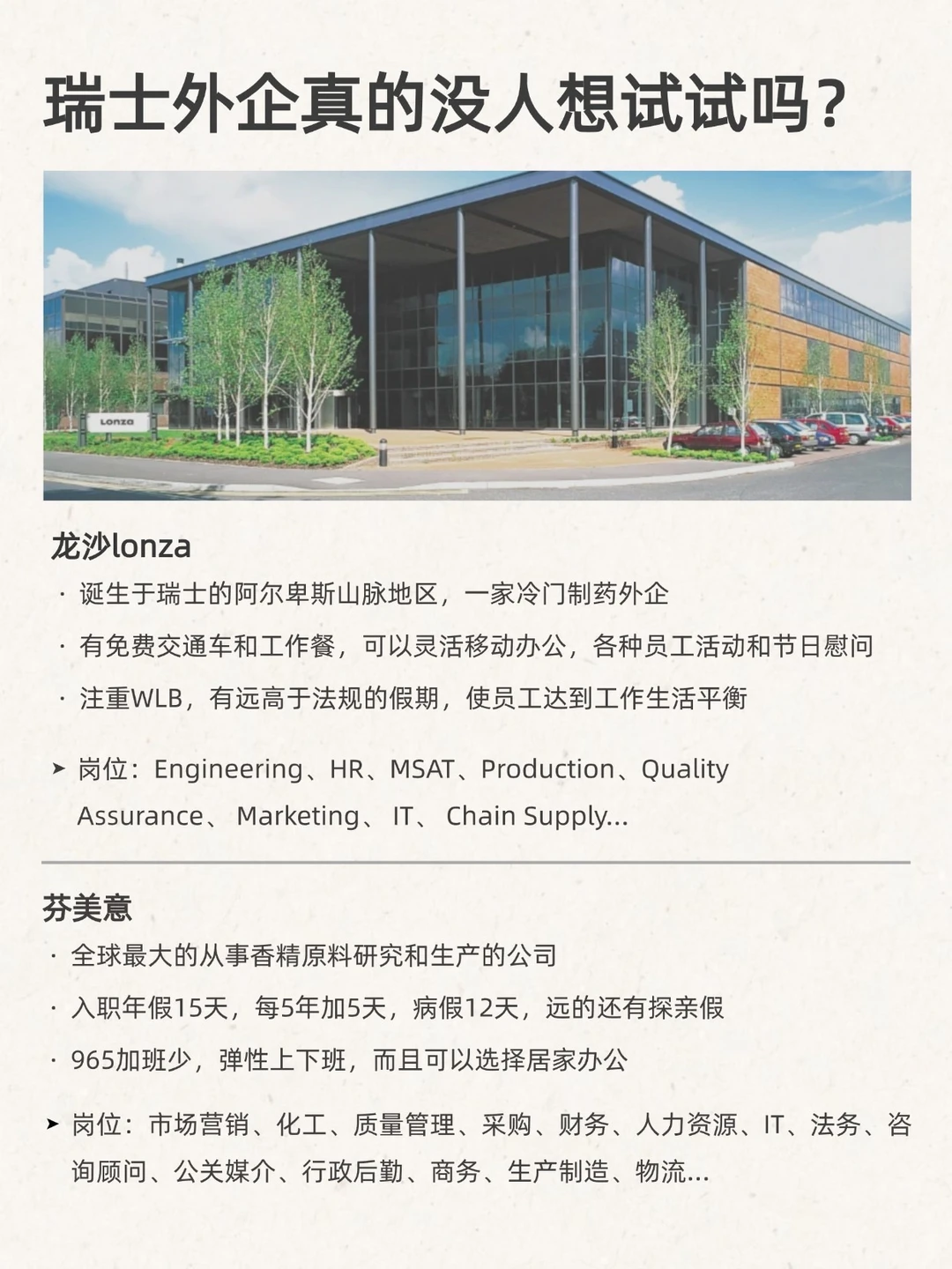 金三银四建议大家去试试瑞士外企,瑞士外企里面其实藏着非常多的情司。福利和员工体验这一块,真的做得很好!
