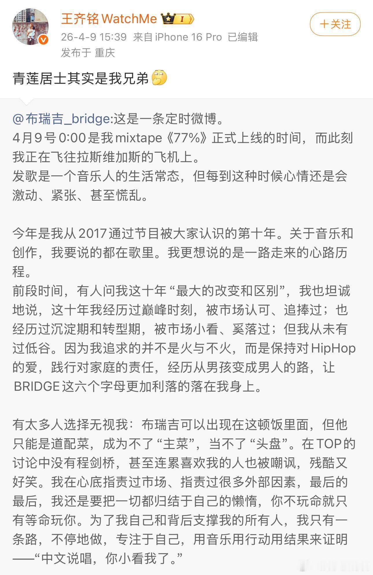 布瑞吉内娱人脉布瑞吉到底要合作多少人 布瑞吉新专《77%》上线也太有排面了,陈小春、GAI周延、张智霖、齐思钧、黄子弘凡、李莎旻子、VaVa、王一珩、张呈、王齐铭纷纷赶来转发打call,一路用真诚交朋友,难怪走到哪里都有兄弟撑腰~