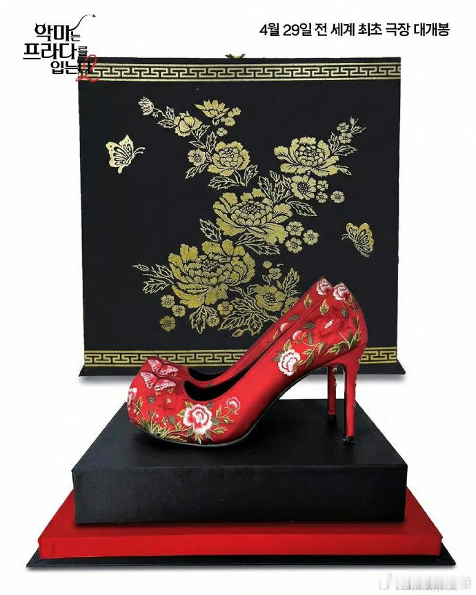 安妮海瑟薇在韩国收到绣花高跟鞋
