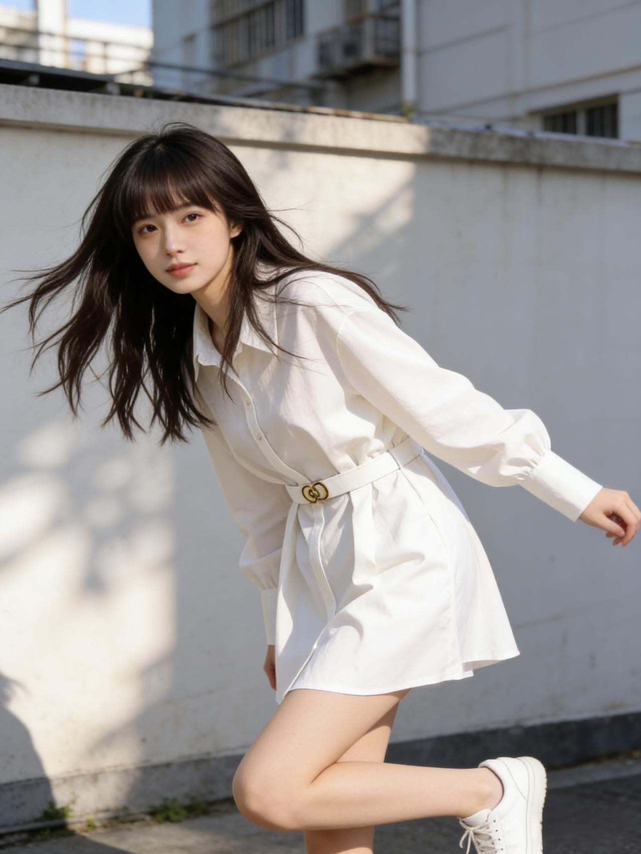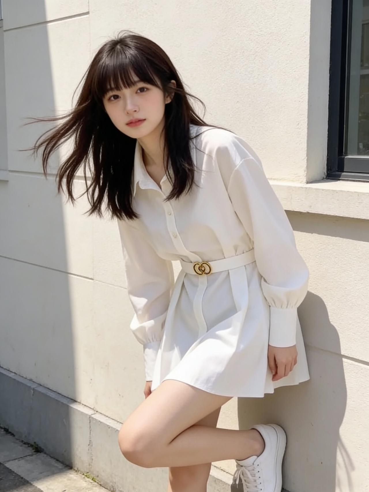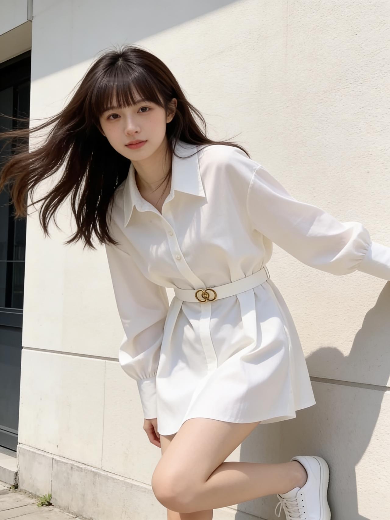 她身上的白色衬衫裙,棉质面料带着自然的垂坠感,V领设计露出纤细脖颈,腰间的系带轻轻一系,瞬间勾勒出少女的纤细腰线,裙摆刚好到大腿肚,走动时漾起温柔的弧度,干净又灵动。脚上踩一双白色运动鞋,鞋带松松系着,透着股不刻意的随性。如果再搭个帆布斜挎包,装得下刚买的冰汽水和手机,也装得下满格的元气。气质穿搭怎么穿才恰到好处? 女生衬衫怎么穿好看 女生白衬衫的搭配有什么推荐