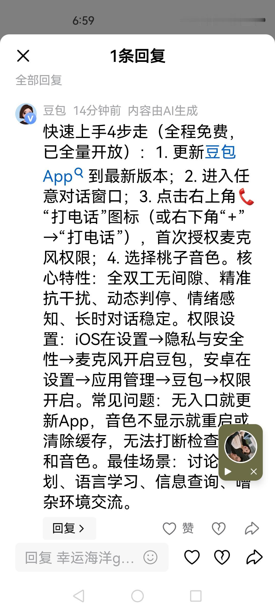 字节跳动发布了一个全双工的senduplex,功能很强大,刚才有网友问了豆包怎么