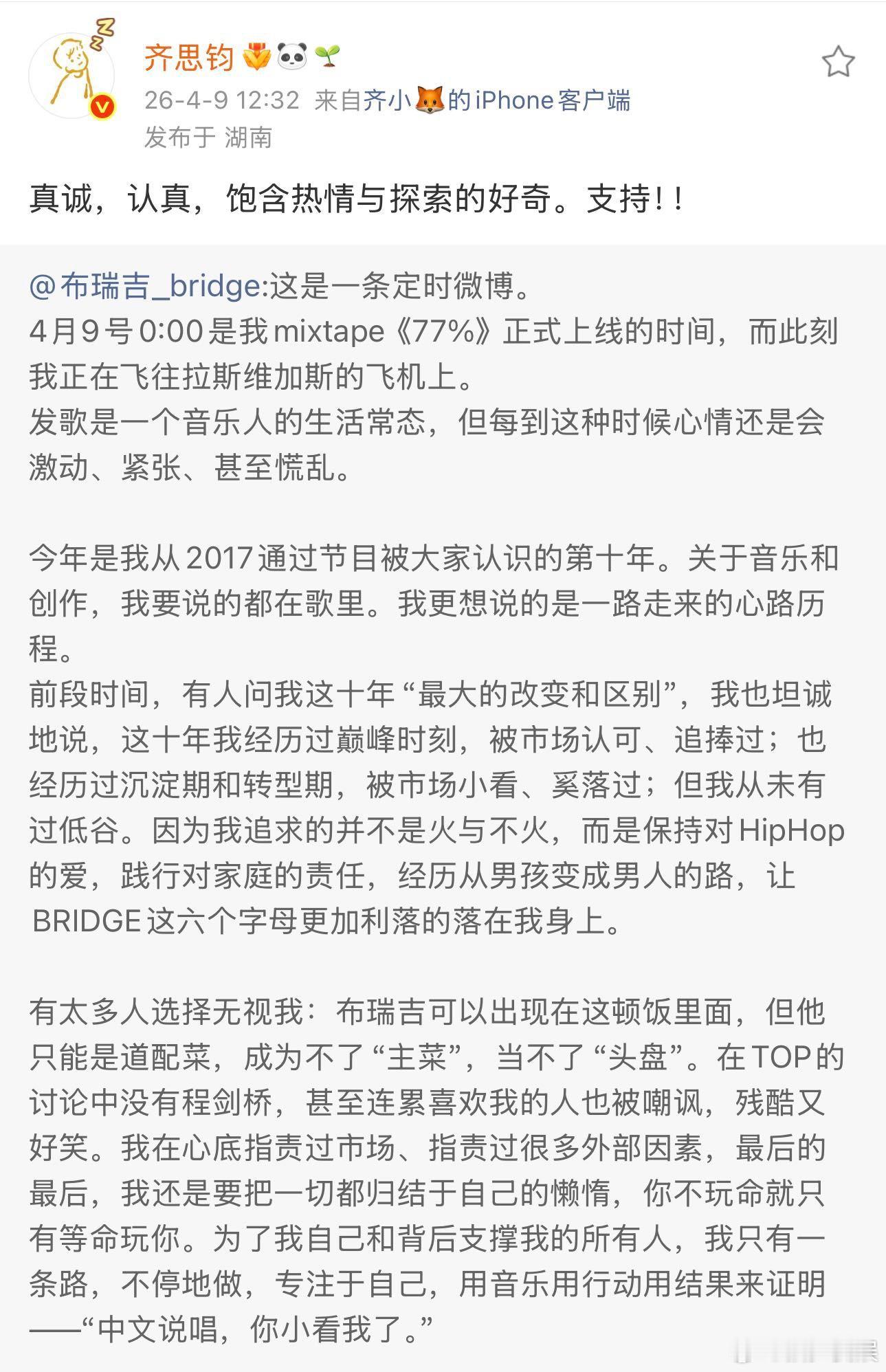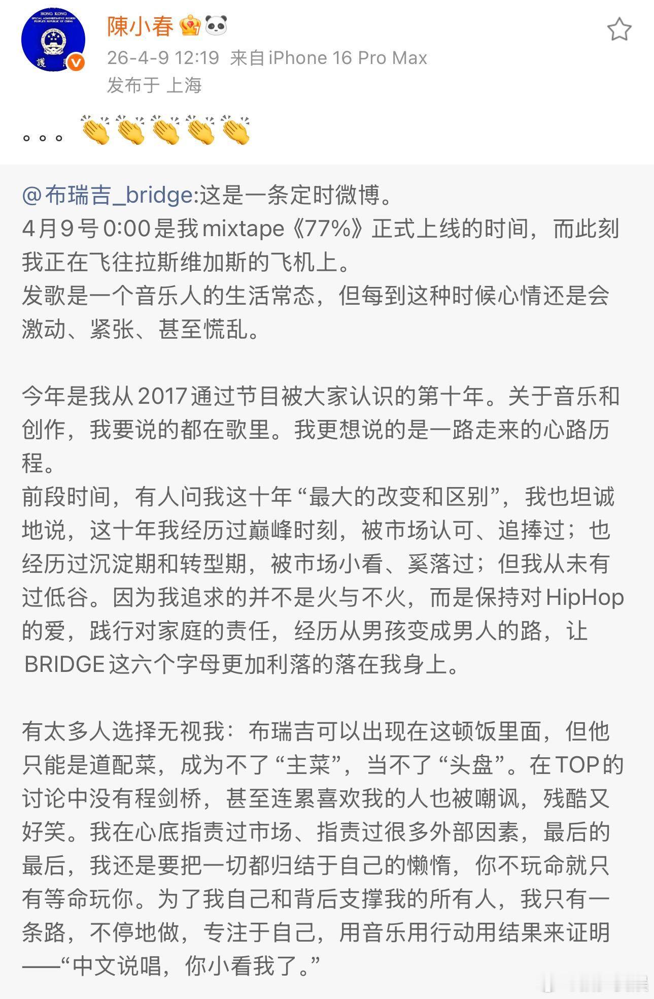 布瑞吉新专夯爆了布瑞吉用音乐说话 听完新专,更加确定他是值得一直喜欢的歌手。