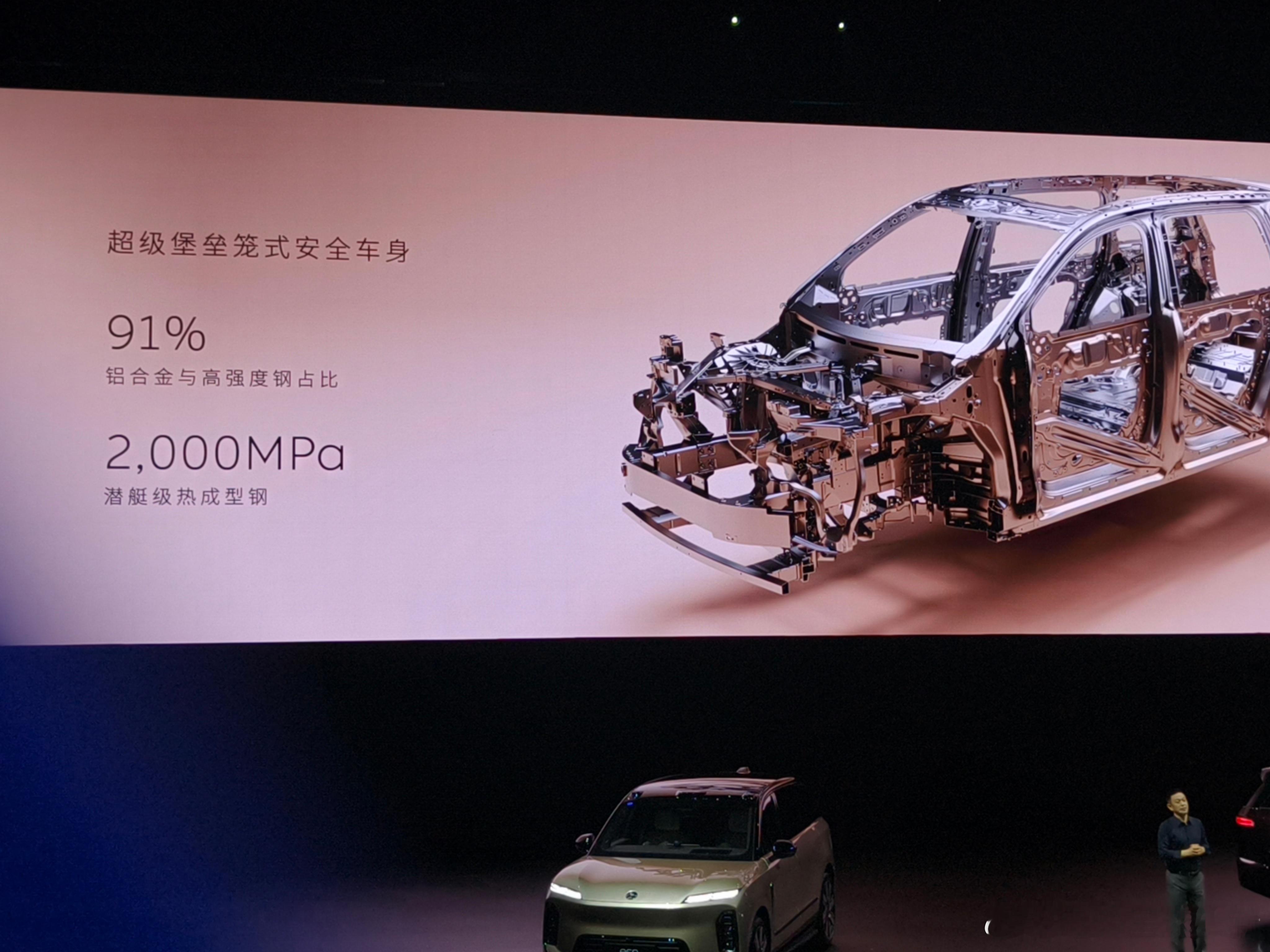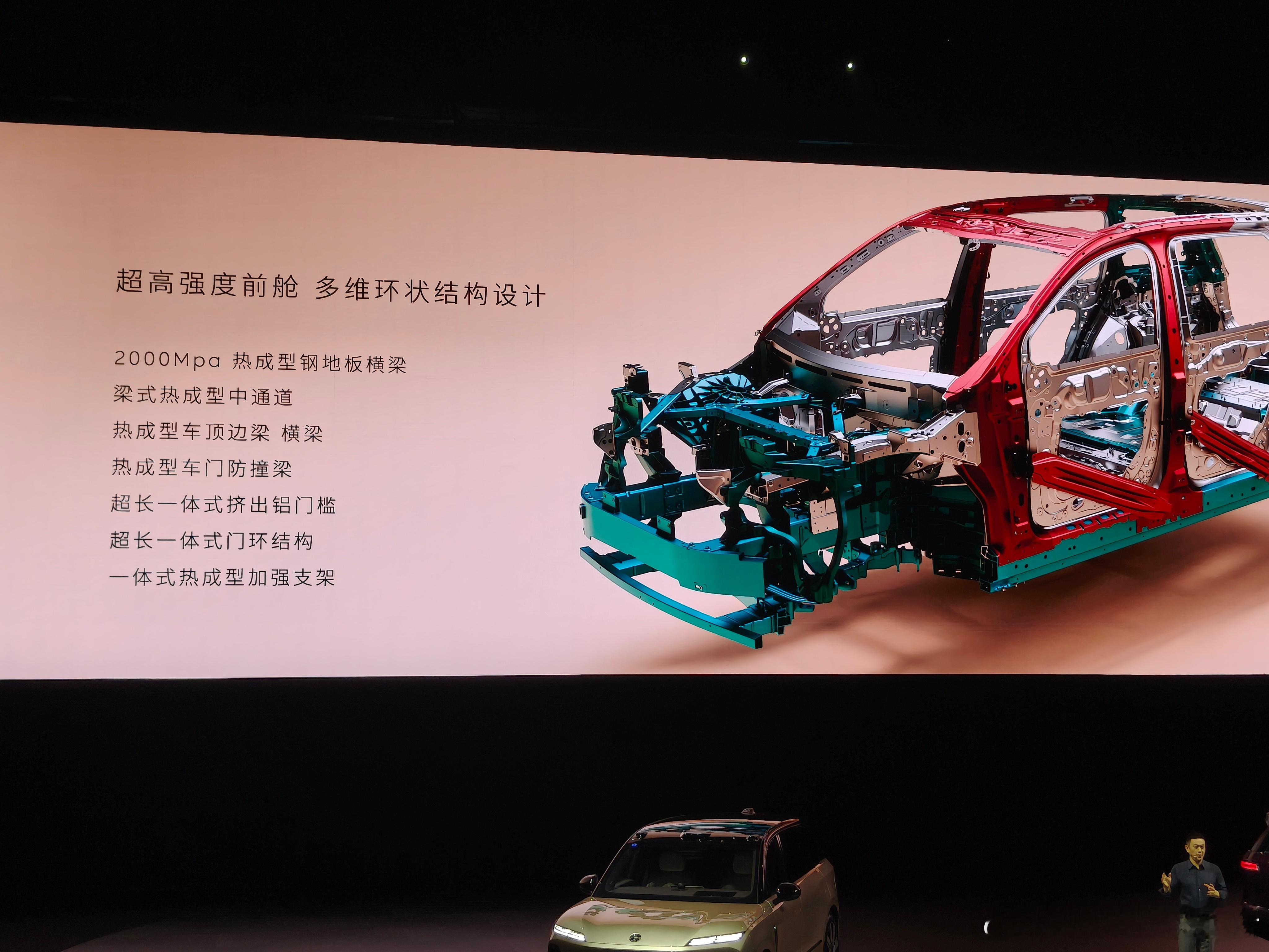 2000MPa 潜艇级热成型钢 + 91% 高强钢铝配比,再加上多纵多横的笼式车身与大面积一体化铸件,车身刚性和抗冲击能力都很扎实。
