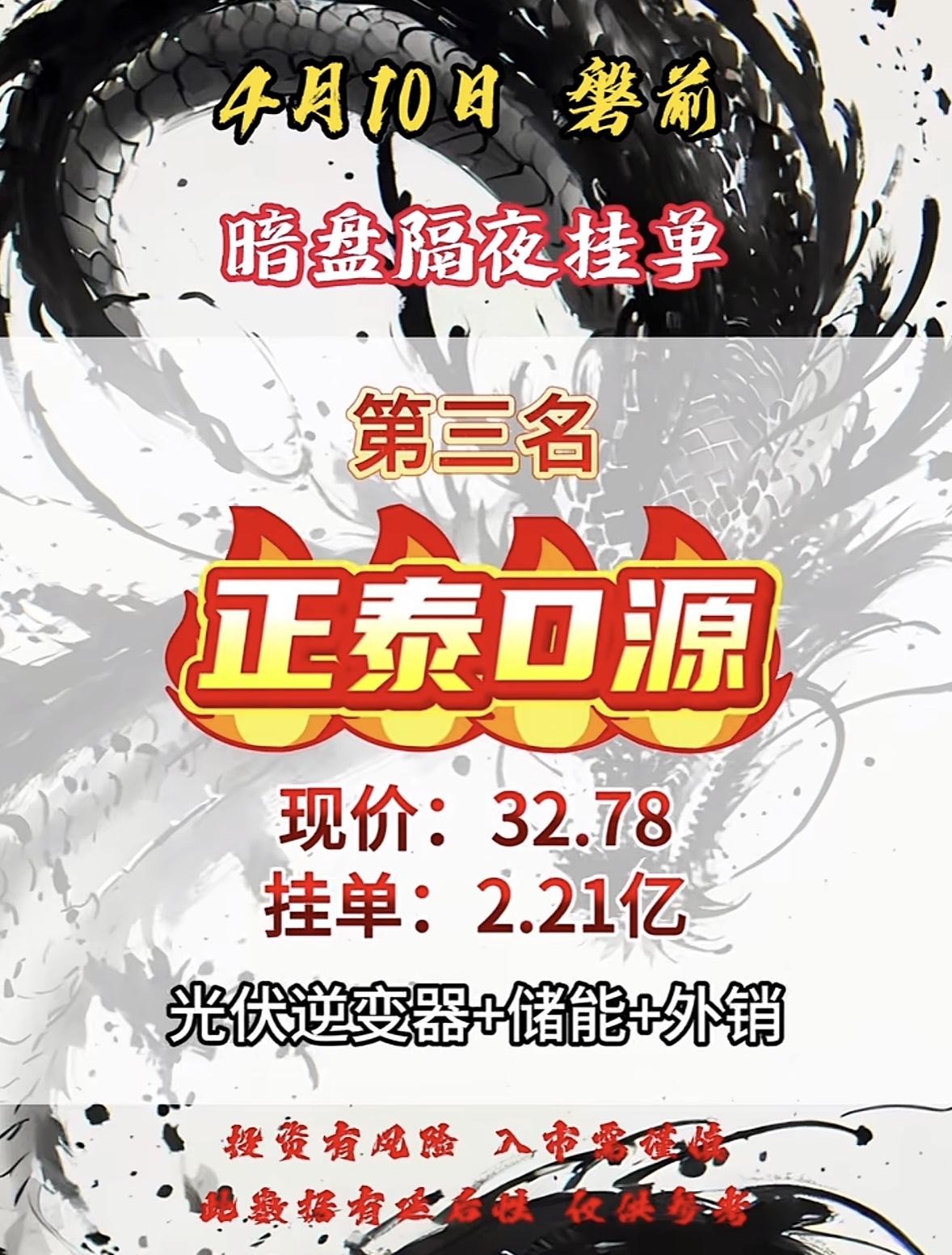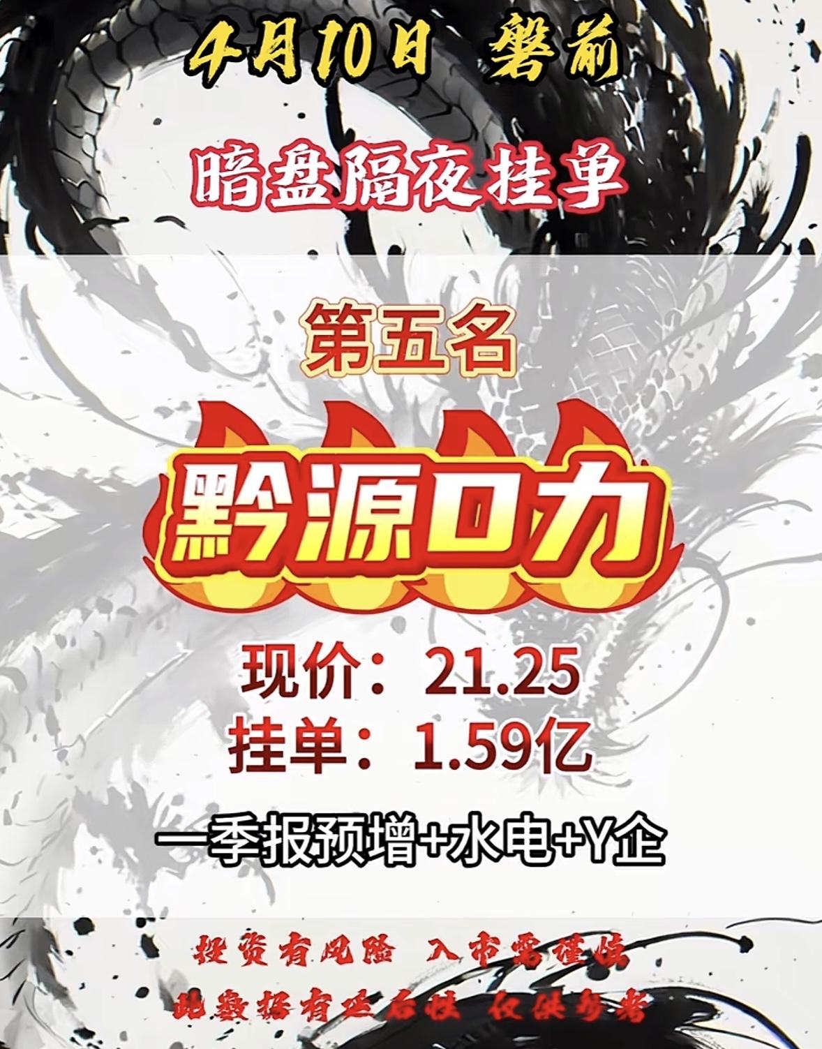 4月10日周五暗盘隔夜挂单排行榜出炉