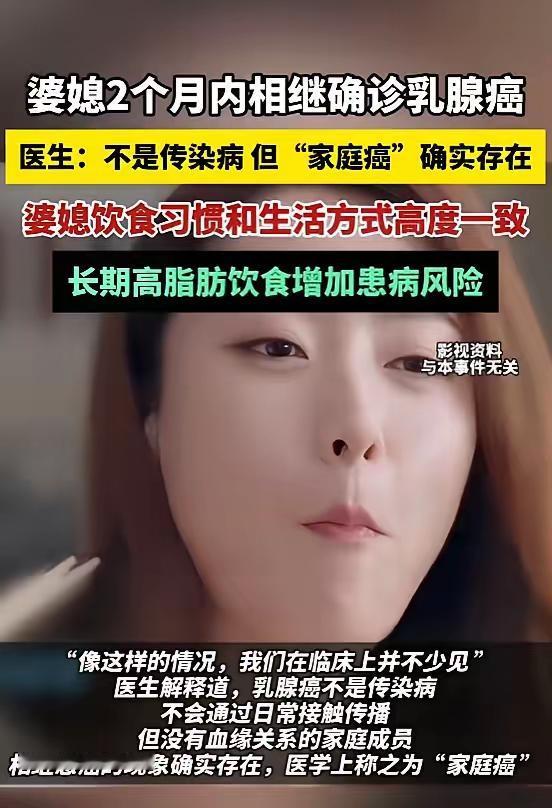 婆媳二人无血缘关系却先后确诊,在医学上被定义为家庭癌现象,这一情况的出现和二人长期共同生活的状态直接相关。
