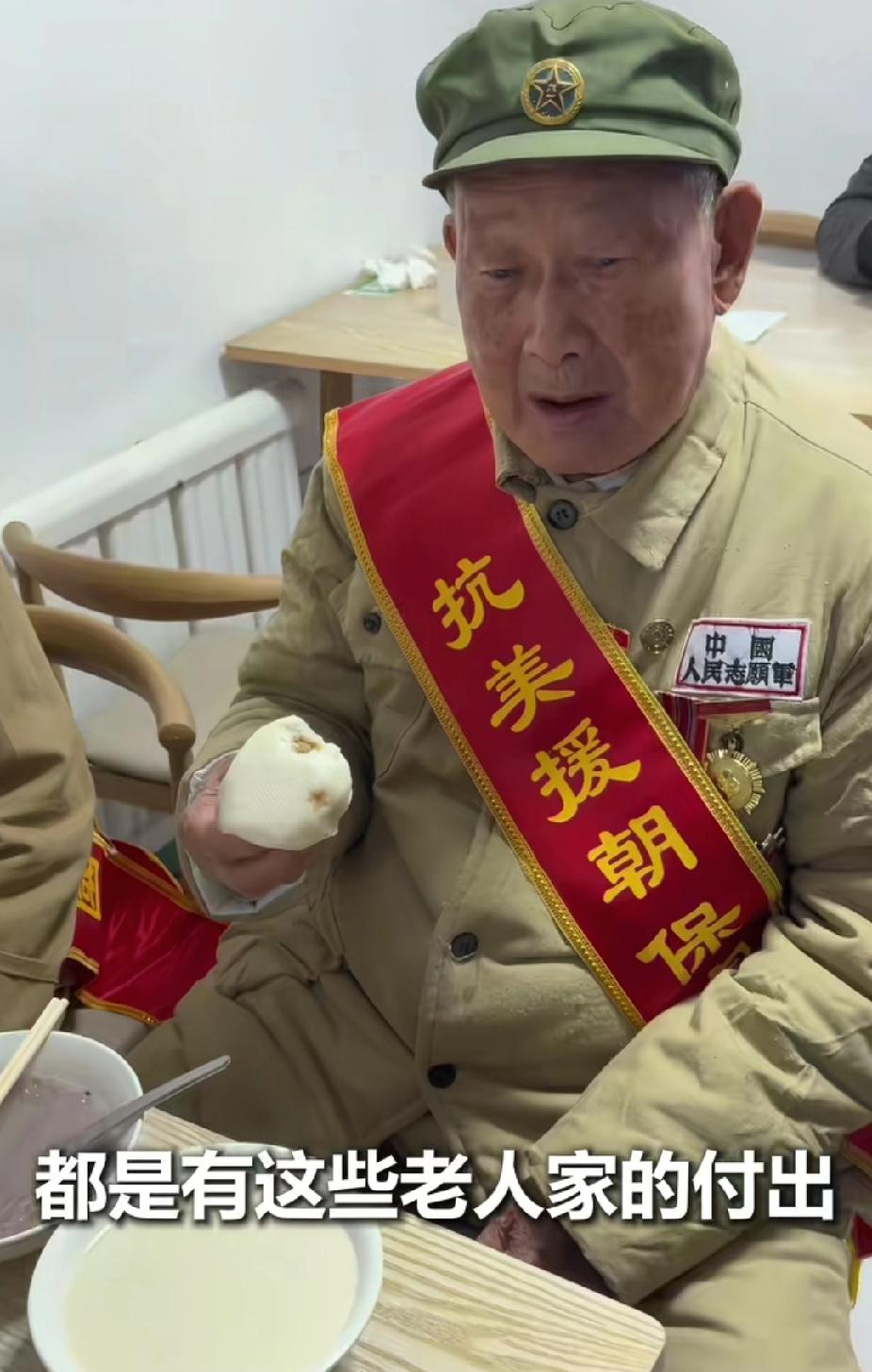 在4月7日这天,一家早餐店来了15个人吃饭。而他们这一行人中有三位老人是抗美援朝志愿军,其中一位已经九十八岁了。