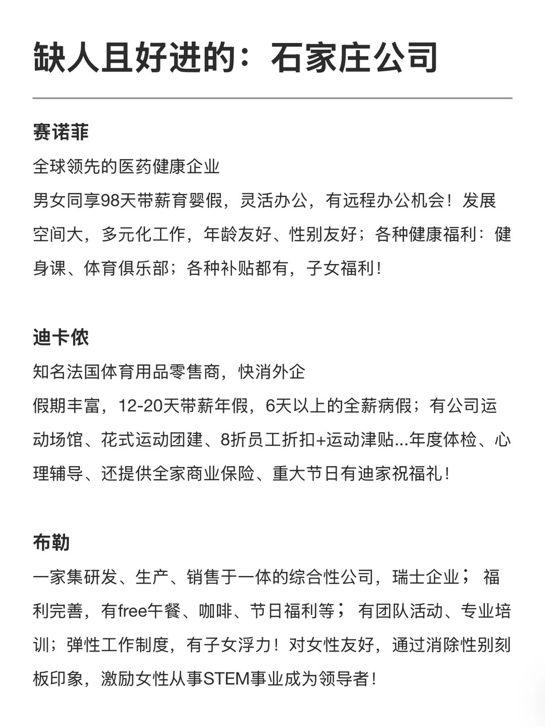 很多外企在石家庄都设有分公司/办事处/地区岗位