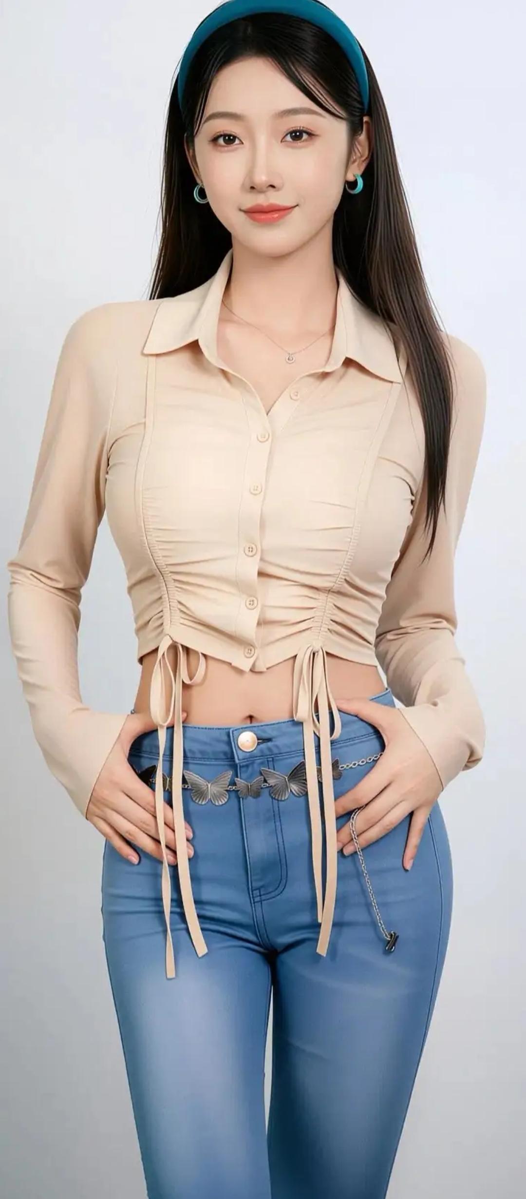 雨后的石板路泛着清润的光,她就站在那里,一身浅蓝色喇叭牛仔裤,把利落与温柔揉得刚