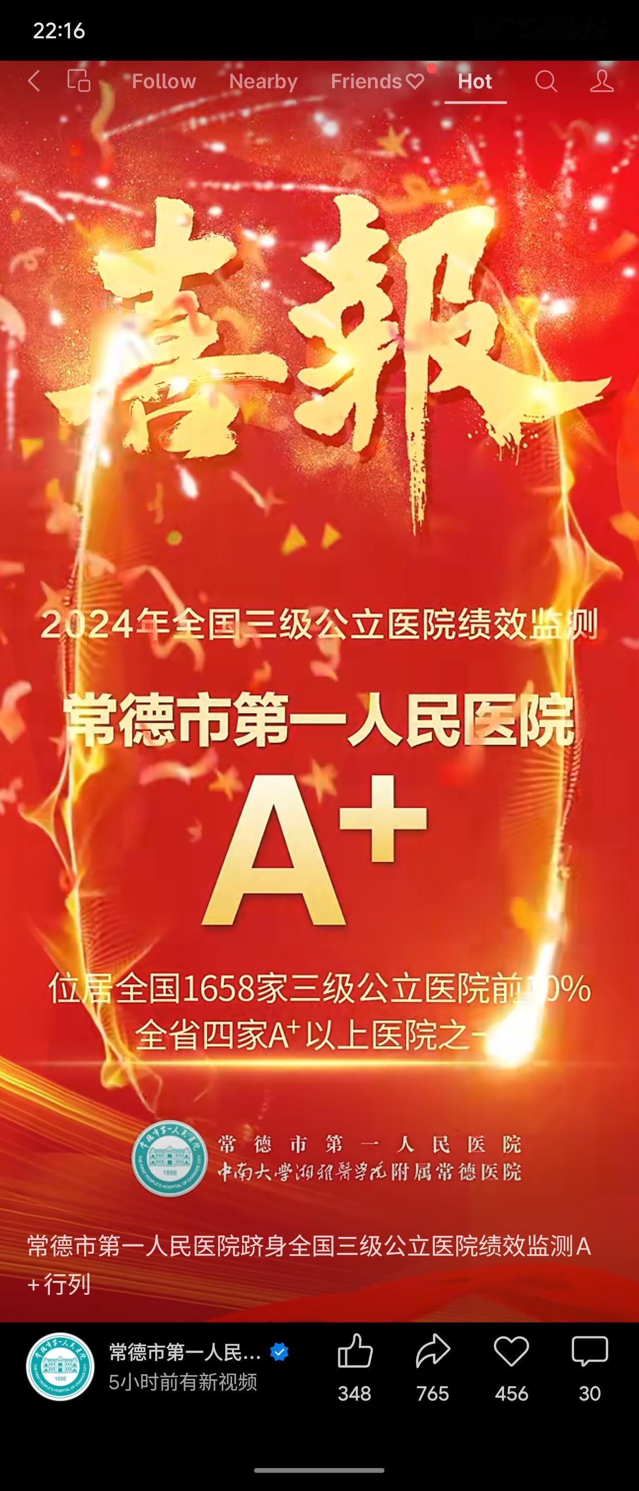 2024年度全国三级公立医院绩效监测(俗称“国考”)结果陆续公布:郴州市第一人民