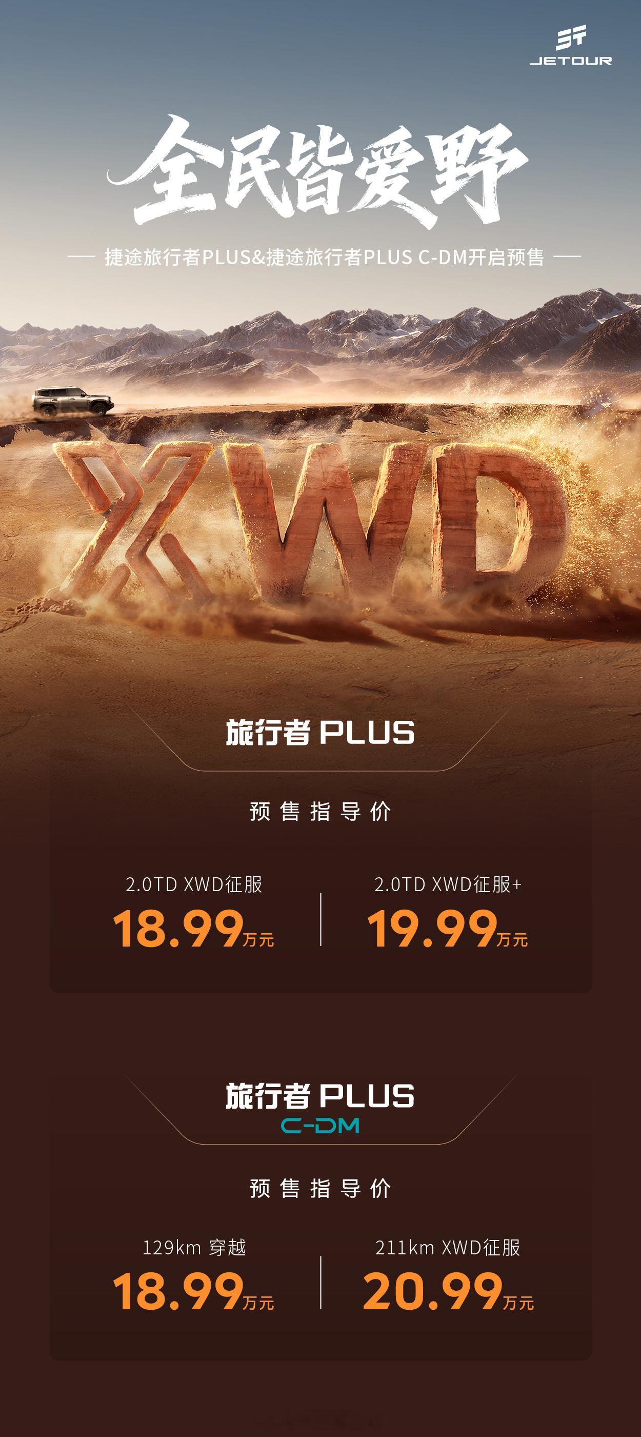 捷途旅行者PLUS开启预售18.99万起,限时可享多重权益。捷途旅行者PLUS与