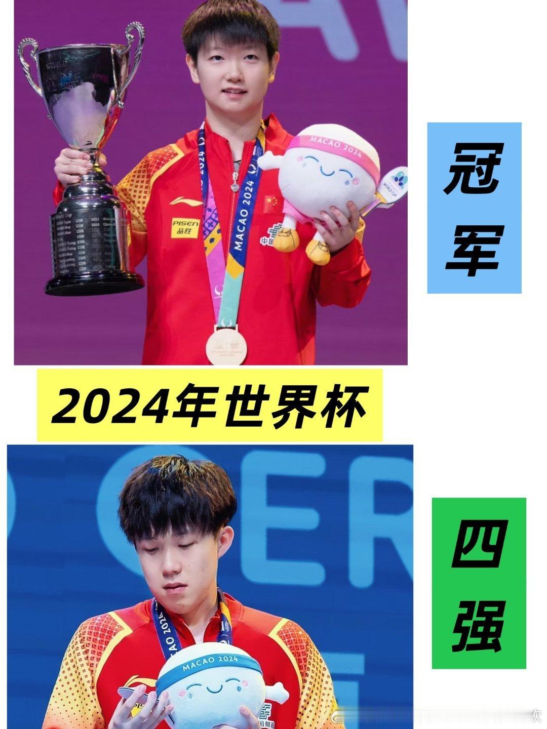 澳门世界杯颁奖礼上,王楚钦一直盯着孙颖莎的奖杯,突然冒出一句:“你的奖杯帽儿呢?