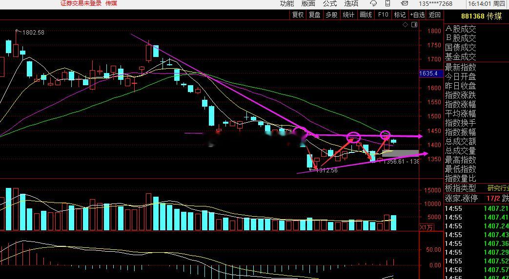 涨上去的品种不说了,天高任鸟飞。说下潜在品种。底部放量,三角收敛。W底颈线位压制,一旦放量突破那么就是一飞冲天。 这里关键点就是回踩确认20日线的有效性。行业俗语叫“鲤鱼跳龙门”