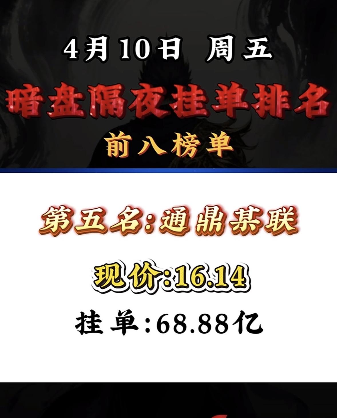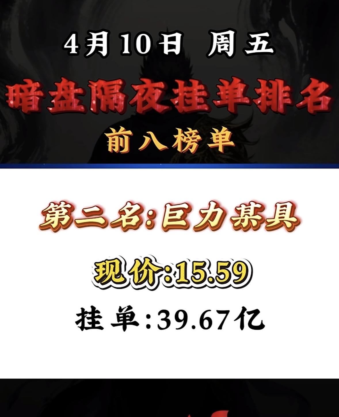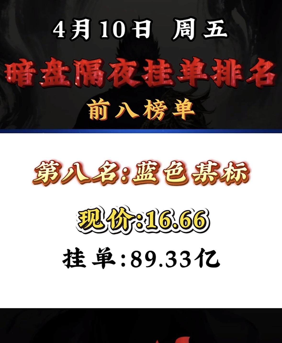 4月10日周五暗盘隔夜挂单排行前八榜单揭晓。 这可太让人关注了!就像3月10日那