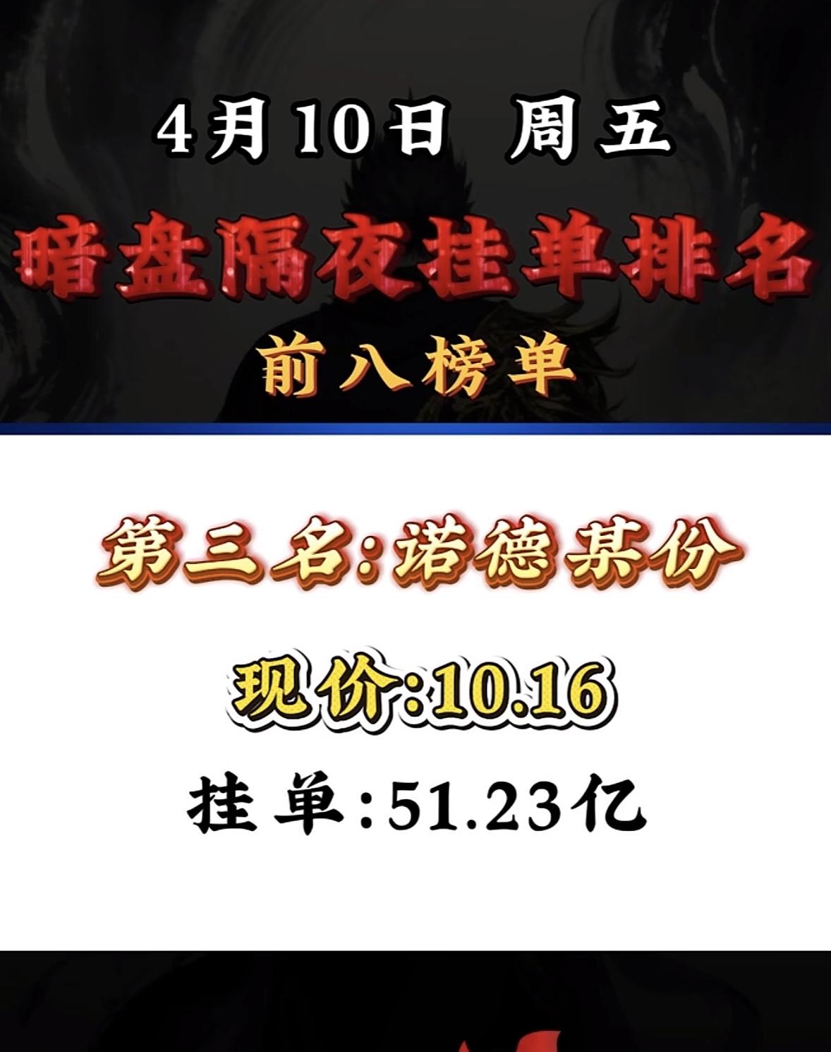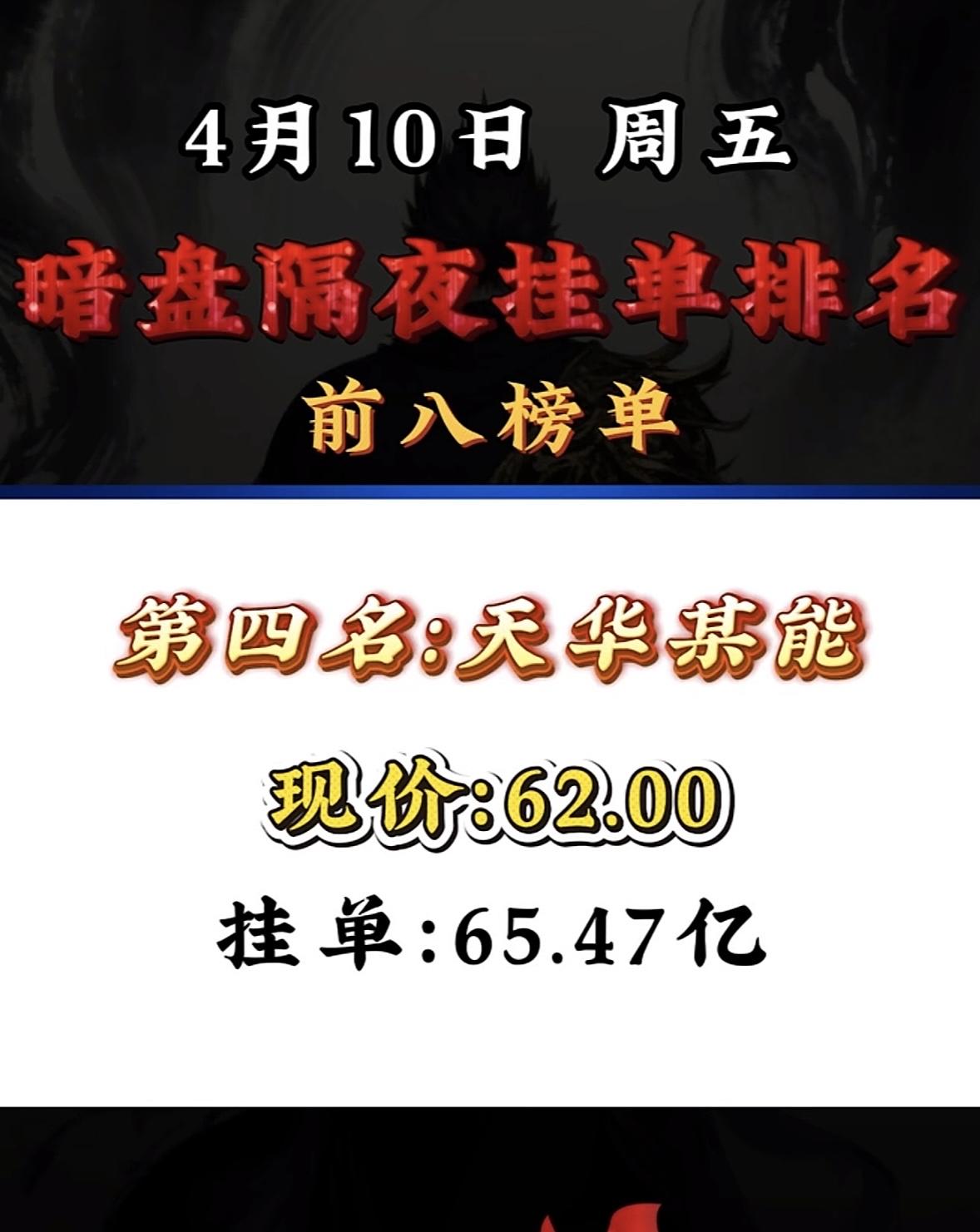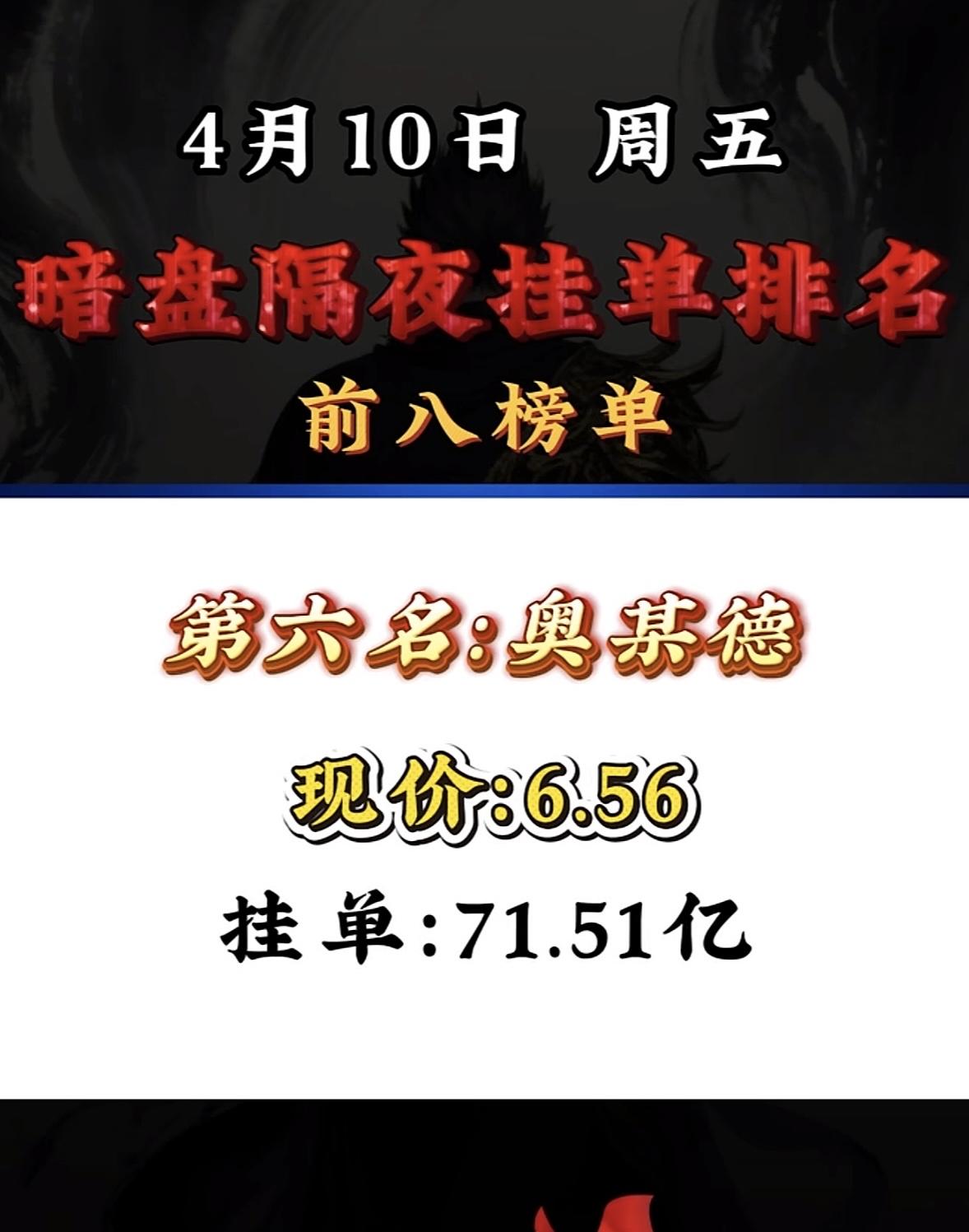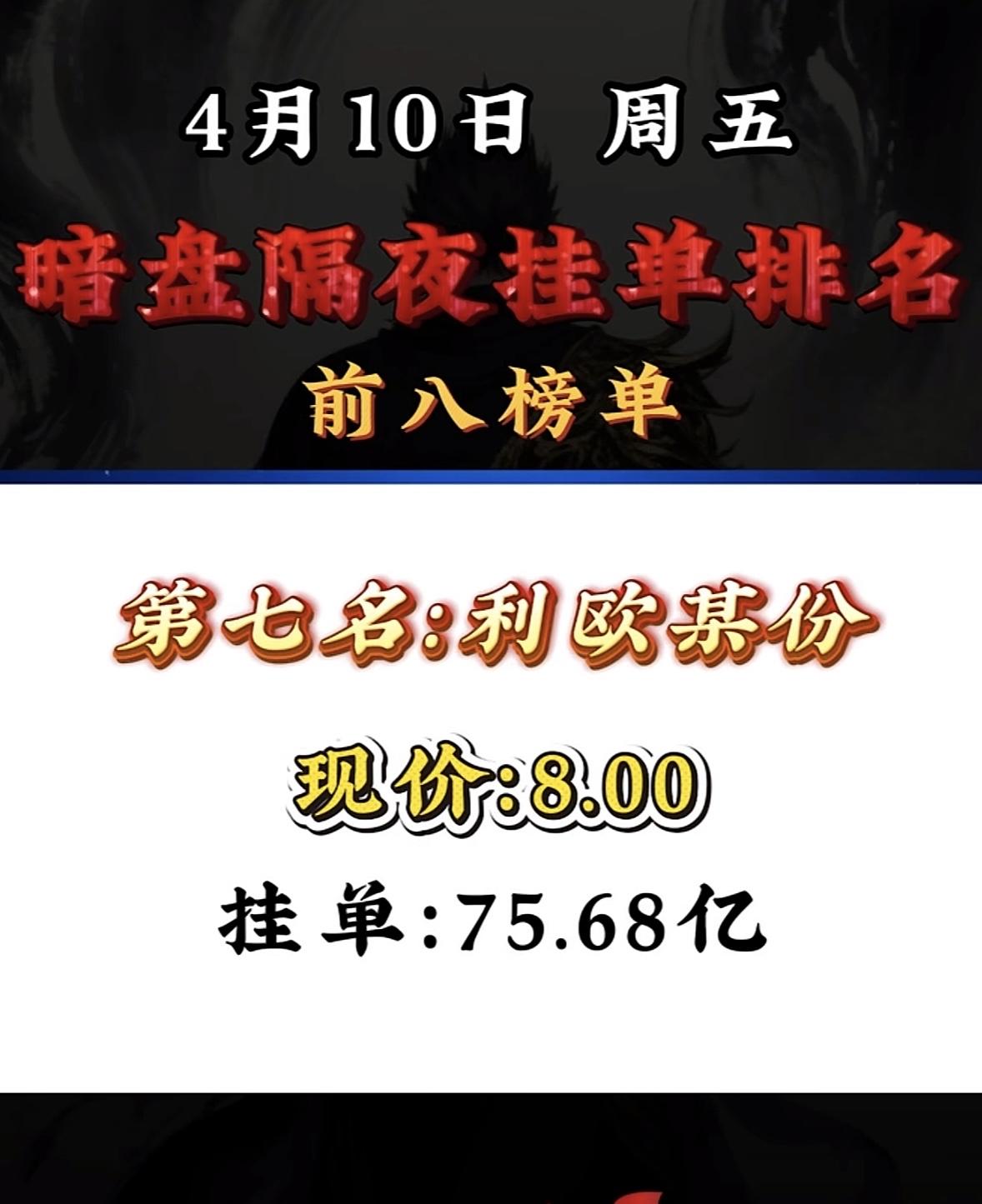 4月10日周五暗盘隔夜挂单排行前八榜单揭晓。 这可太让人关注了!就像3月10日那