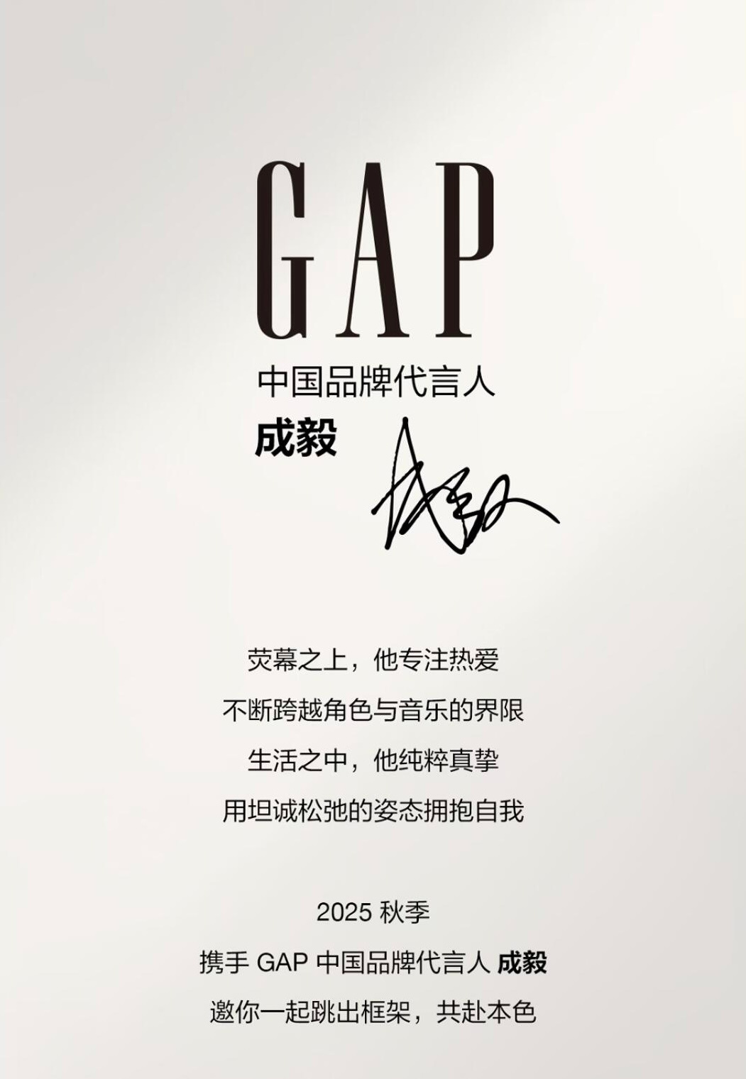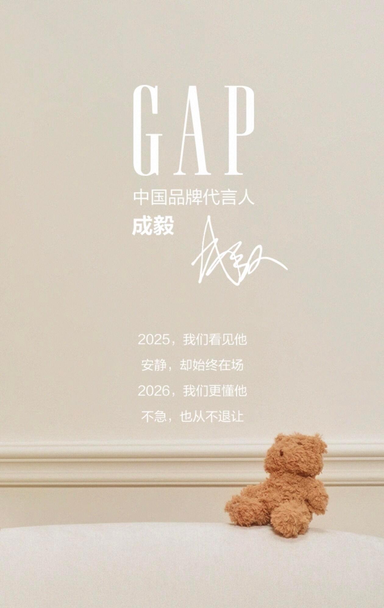 2025,灵魂共振,双向奔赴✨成毅以热爱为翼,以本真为盾,用松弛坦诚拥抱自我,完美契合GAP「经典有态度,舒适即力量」的内核,是最契合的双向选择。2026,懂你相守,共赴新程💫成毅在沉淀中锚定方向,在停靠后坚定出发,停留不是退让,出发更有力量。GAP与成毅,以灵魂同频,赴本色之约,合作共赢,未来可期
