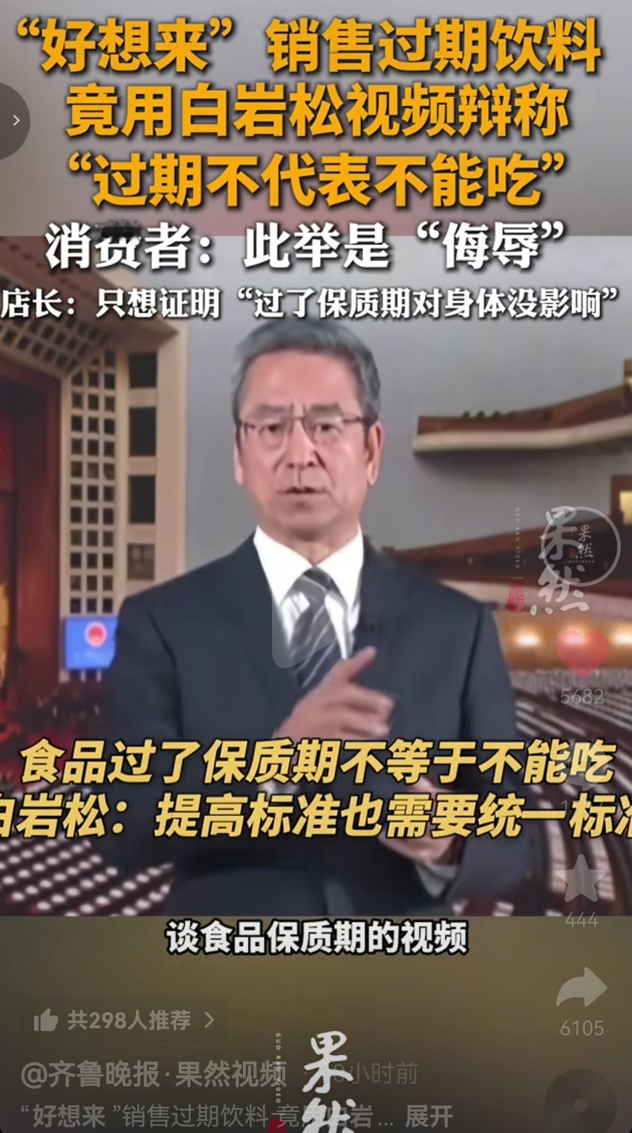 网友看到后评论说:我真的服了!卖过期食品还有理了?拿白岩松视频当挡箭牌,太不合适了!
