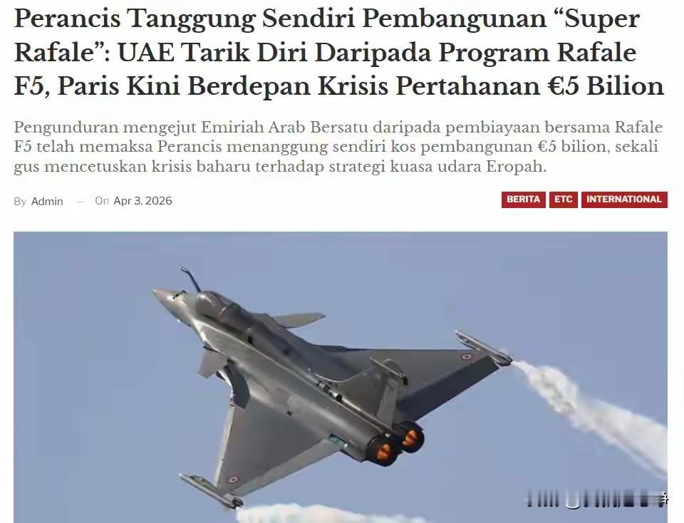 阿联酋已经撤资了,未来法国人只能自己搞新一代的战斗机