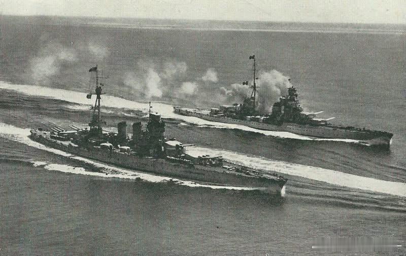改造后的加富尔伯爵号战列舰与新锐的阜姆号重巡洋舰并肩航行,摄于30年代后期。尽管宽度上阜姆比加富尔少了8米,但长度上已经几乎一样了:阜姆号长182.8米,加富尔号则是186.4米。这也是重巡洋舰体格越来越大和海军技术大发展的表现军事历史全触达中外舰闻烽火问鼎计划