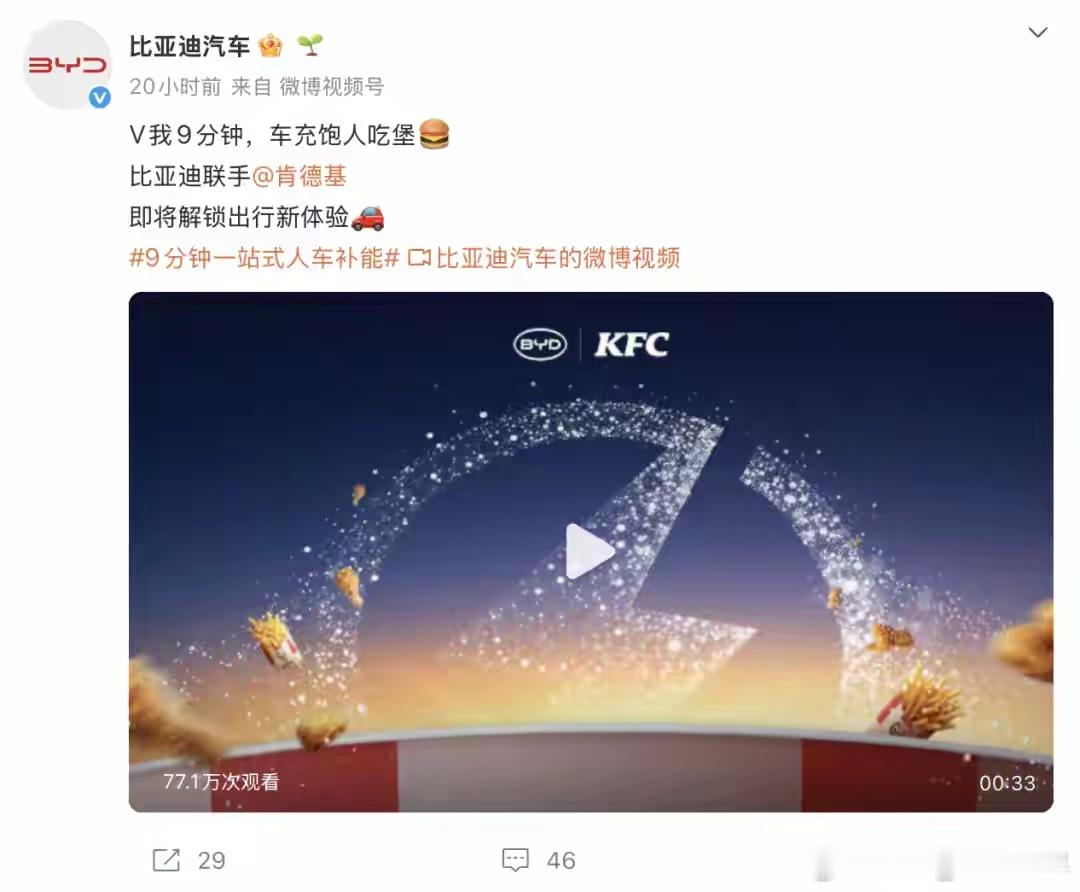 【比亚迪×肯德基:边充电边吃堡,补能场景大升级】4月9日,比亚迪与肯德基正式达成