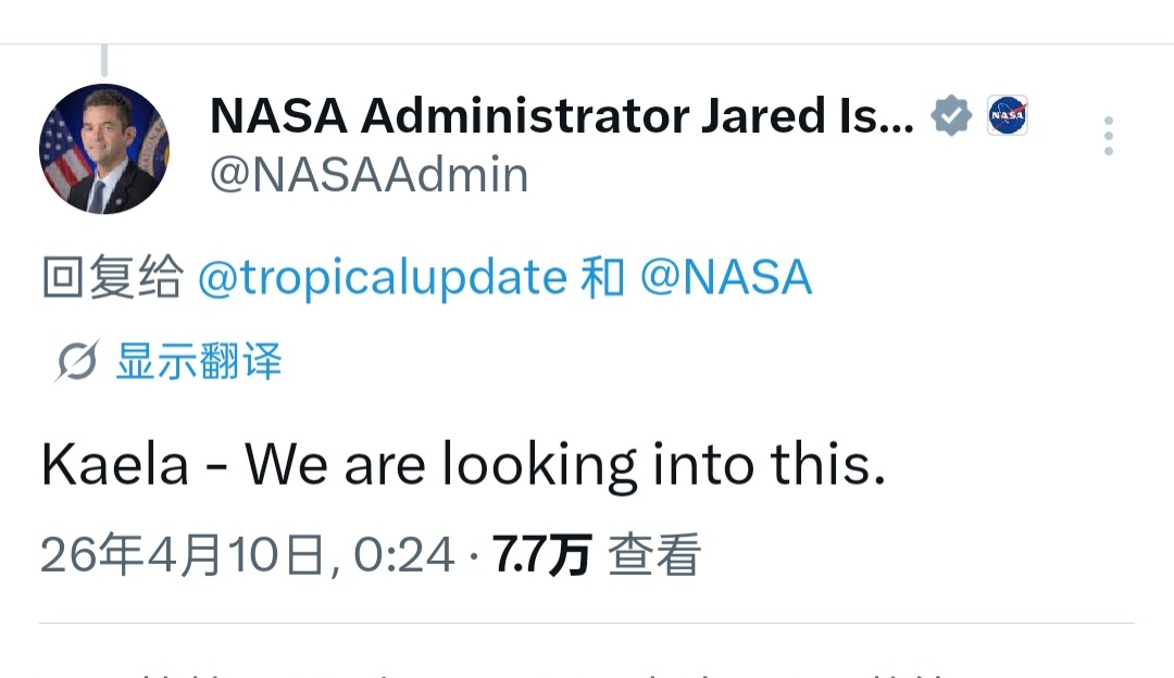 NASA 局长回复:我们正在考虑这个事情。