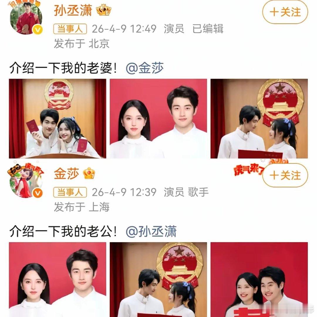 果然是女人懂女人,我问我闺蜜:“42岁的金莎和25岁的小男友还能生宝宝吗?”她白了我一眼,说“你懂什么,人家要的从来不是按部就班的人生”!谁能想到,当年全网追着骂“软饭男”“恋爱脑”的金莎孙丞潇,真把这段相差17岁的姐弟恋修成了正果。翻了细节才发现,人家2月13日就悄悄领了证,选在情人节前一天,浪漫又低调,整整憋了两个月才官宣。就一句“介绍一下我的老公/老婆”,没有华丽辞藻,全是藏不住的真心。从孙丞潇53天159道不重样的菜,到冰岛极光下520朵白玫瑰的求婚,再到红本本上的名字,他用四年时间把所有质疑全打服了。原来真的是先遇上对的人,才有对的时间。人对了,什么时候领证、什么时候要宝宝,全都是最好的安排。恭喜金莎,终于嫁给了把她宠成小朋友的人!
