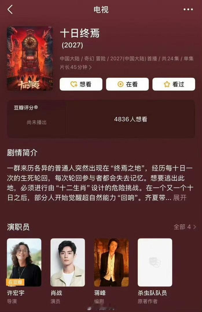 肖战十日终焉电视剧超话TOP1肖战《十日终焉》这是要出圈的节奏了吧,电视剧《十日